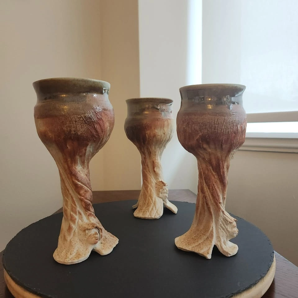 π₯ 3 Hand Crafted Clay Goblets, with Woodland Character Face π₯