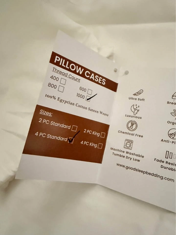 New Good Sleep Bedding Pillow Case - 100% Egyptian Cotton Pillow Covers, 1000 TC Pillow Cases Queen/Standard Size 4 Pack. Retails for $49.99+ tax on amazon. Please check my other listings! 😊