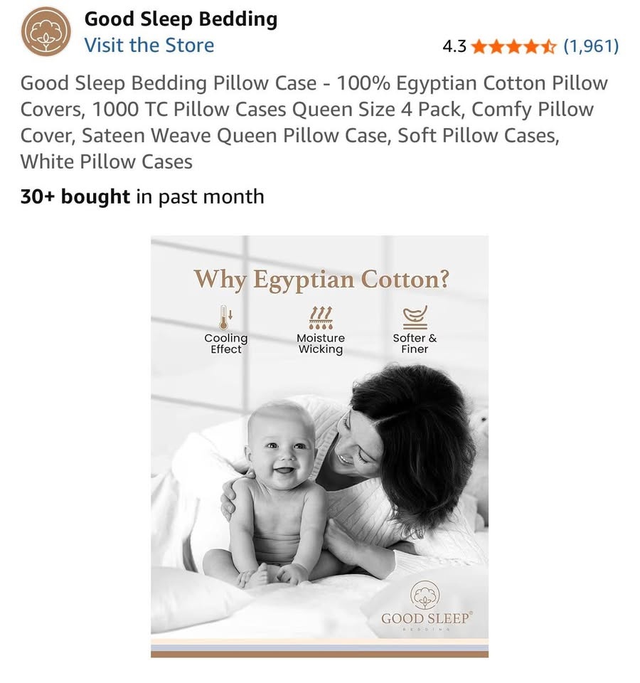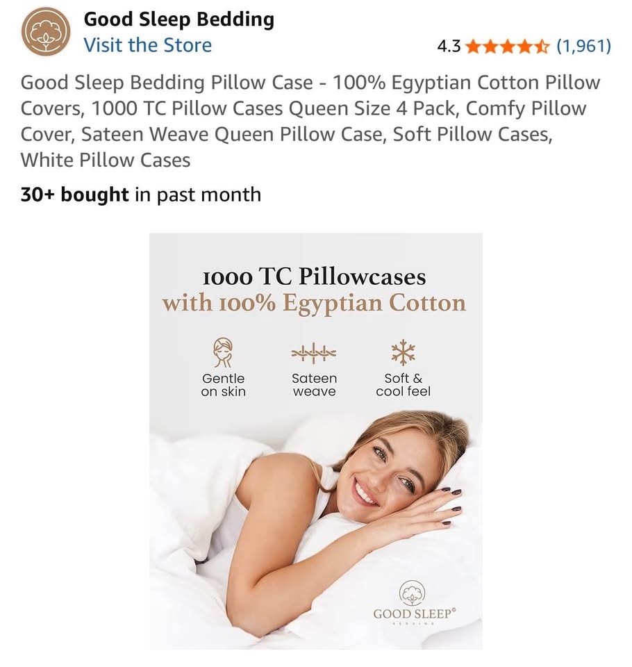 New Good Sleep Bedding Pillow Case - 100% Egyptian Cotton Pillow Covers, 1000 TC Pillow Cases Queen/Standard Size 4 Pack. Retails for $49.99+ tax on amazon. Please check my other listings! 😊