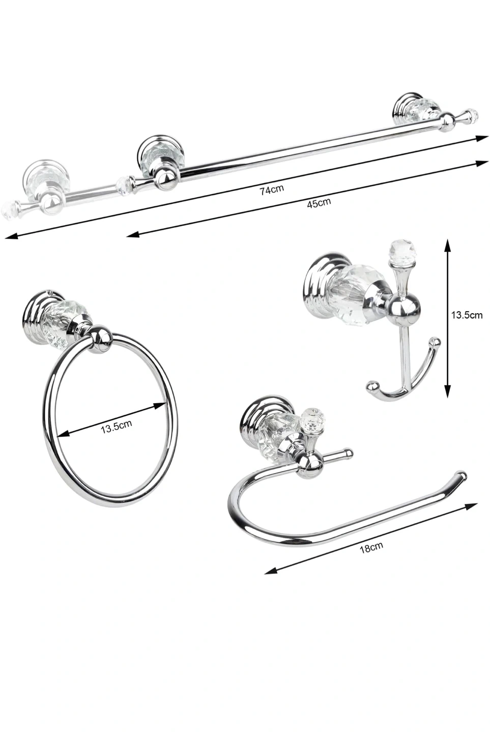 Each piece is finished in chrome with clear crystal accents.