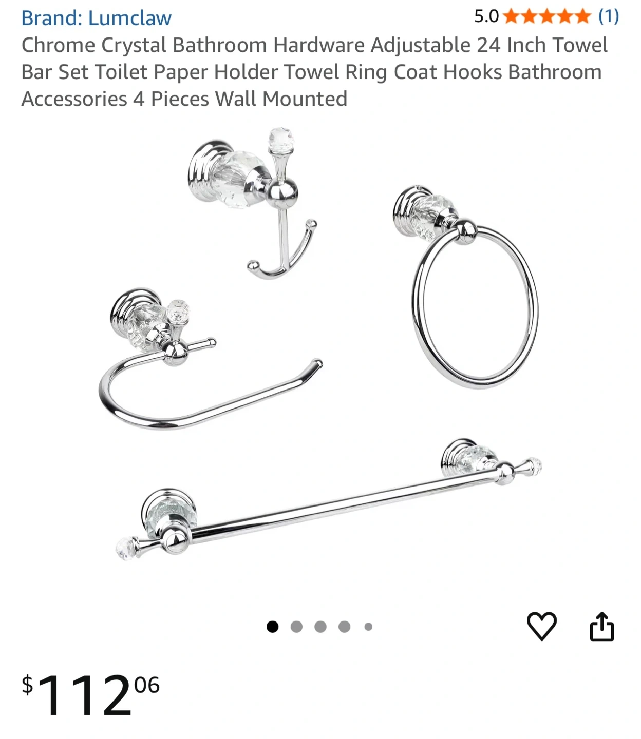 Chrome Crystal Bathroom Hardware Set -2 Available