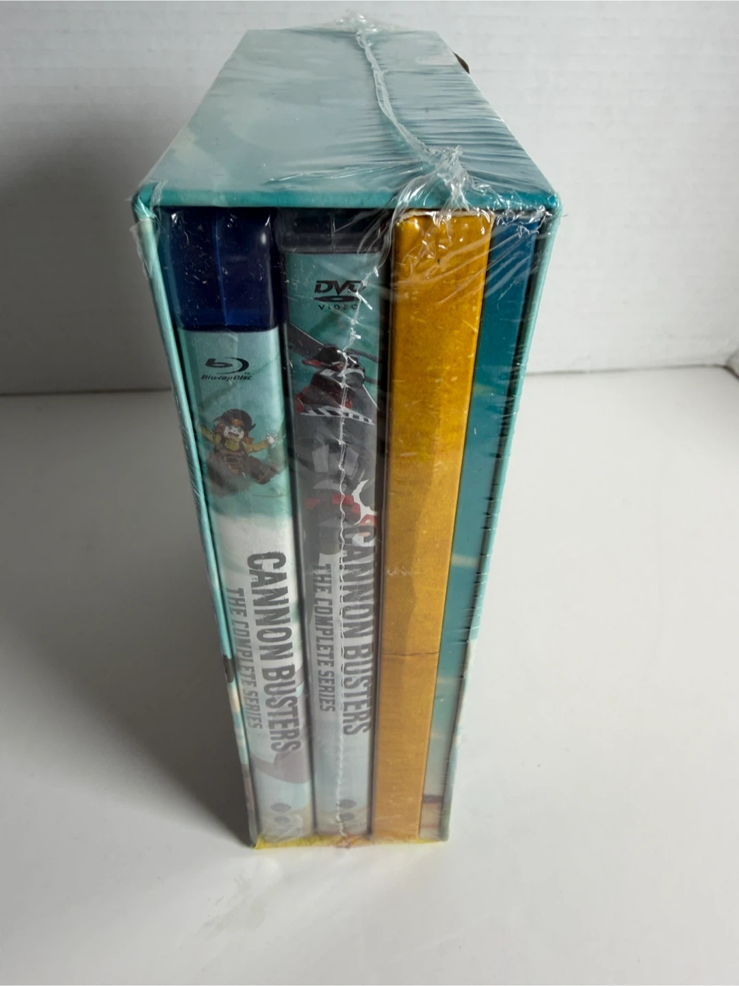 This is the complete series of Cannon Busters on Blu-ray and DVD. It includes a 64-page opening and ending songs booklet, a collectible box, and a pin. The special features include A Journey Behind the Scenes BTS Featurette and Cannon Busters Episodes. It's a must-have for fans!