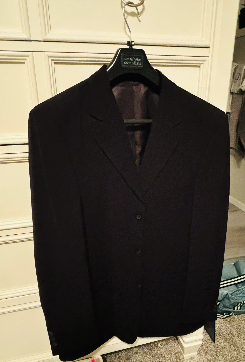 Here's a Wardrobe Essentials blazer in a classic black colour! It's made of 100% polyester for both the outer layer and the lining. Perfect for adding a touch of sophistication to any outfit!