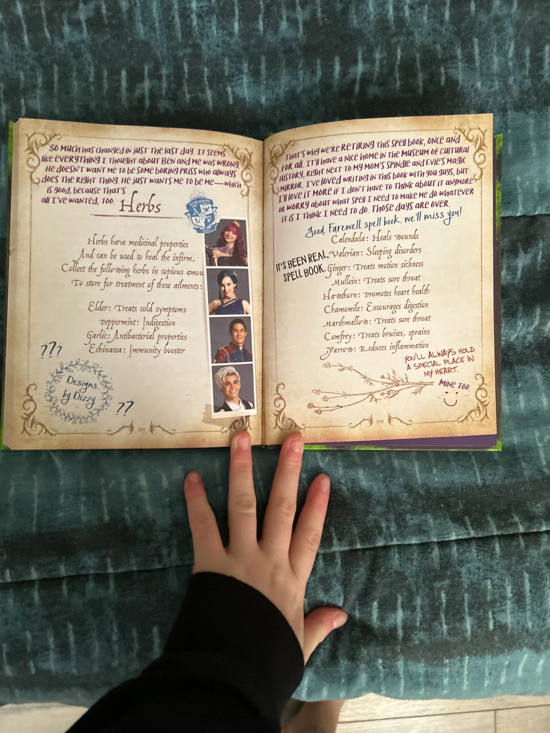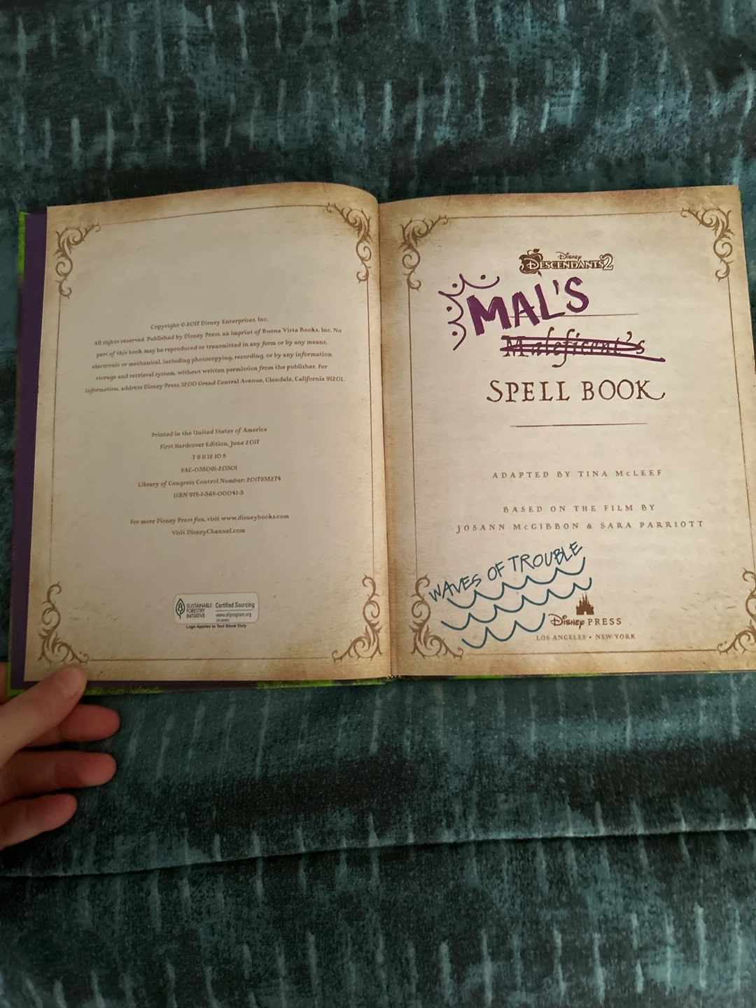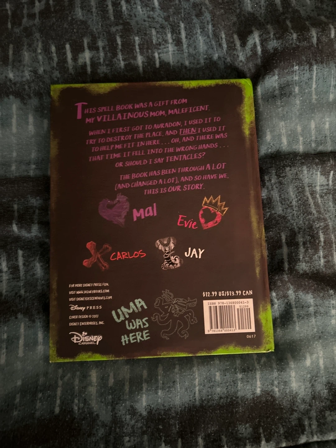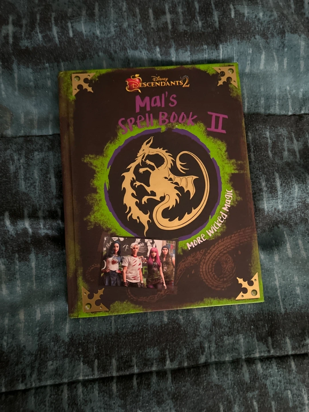This is Mal's Spell Book II from Disney's Descendants 2. It's adapted by Tina McElereef and based on the film. It contains spells, information on herbs, and magical ingredients.