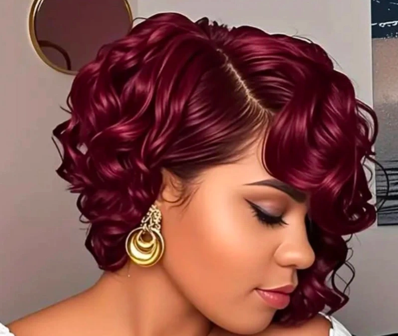 Burgundy Curly Bob Wig🥕