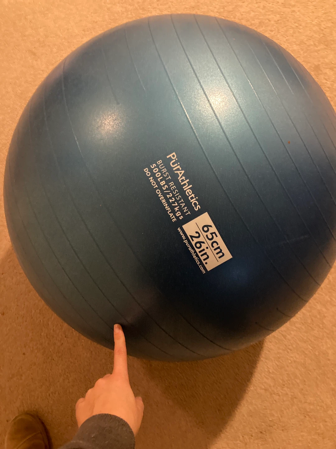 I'm selling a Pur Athletics exercise ball. It is 65cm (26in) and burst resistant up to 500lbs/227kg