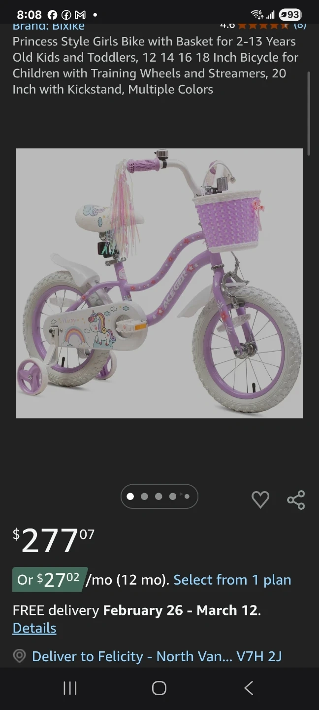 Princess Style Girls Bike with Basket and training wheels "π"