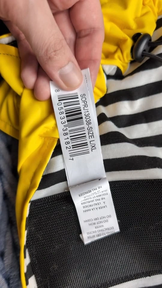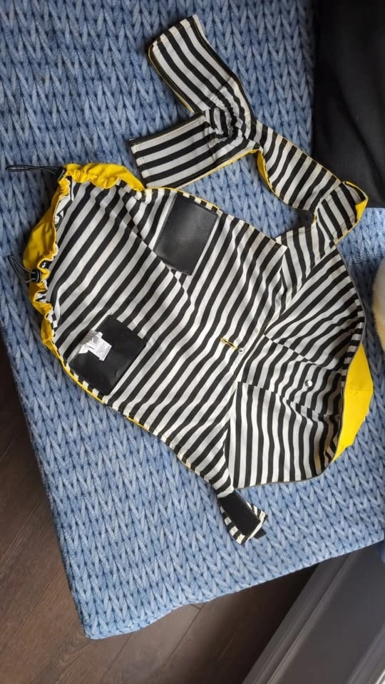 Canada Pooch dog raincoat, size L/XL. Vibrant yellow with reflective strip for night visibility. Comfortable striped lining. Easy velcro closures. Excellent condition, keeps your dog dry in any weather. Perfect for medium to large breeds. Pickup only, Dilworth mountain area. Check my other listings!