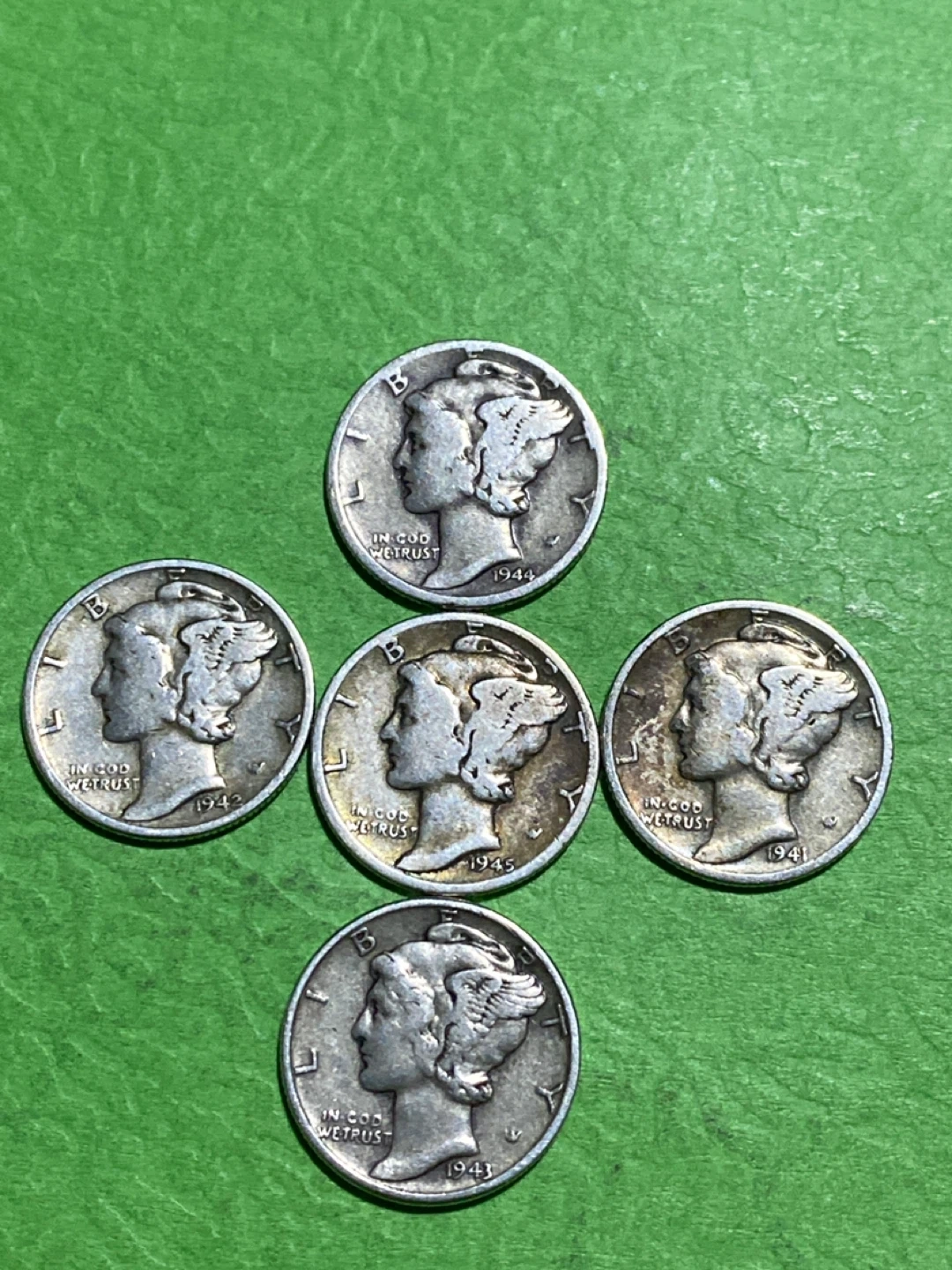Buy & Sell5 Mercury Dimes - 1941, 1944, 19455 Mercury Dimes - 1941, 1944, 1945$110Five US Mercury dimes. Dates visible include 1941, 1944, and 1945. These coins are a great addition for any collector.WHERE TO MEETCheck LocationView MapSELLERverifieddiamondCorso Italia86981 reviews0 chats·0 favorites·5 viewsSEND CHAT TO SELLERHi diamond! I’m interested in your listing.Hi diamond! I’m interested in your listing.Get the Karrot app to chatSign In to chat