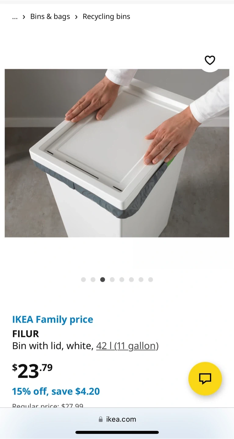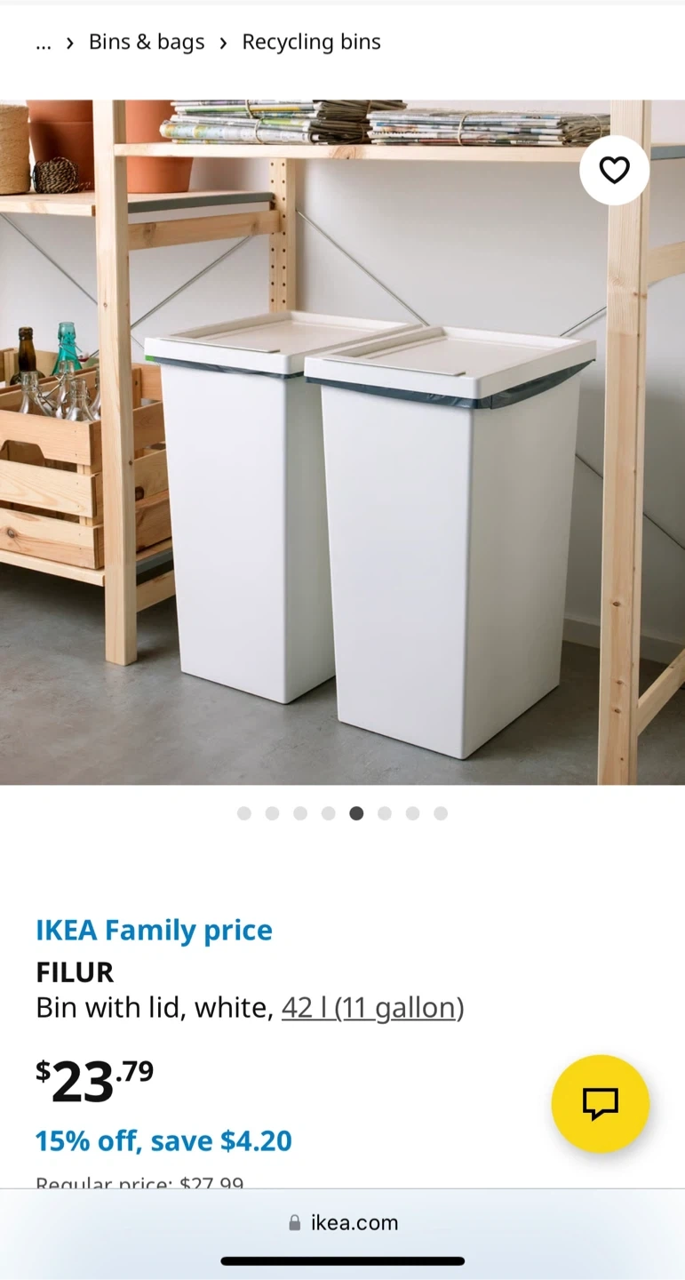 Selling a white IKEA FILUR bin with a lid. It holds 42L (11 gallons). Dimensions are 29 cm x 38 cm x 55 cm. Great for recycling