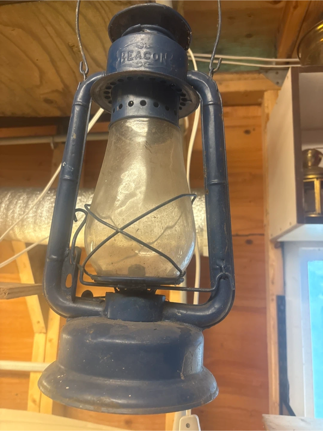 Selling a vintage Beacon kerosene lantern. It's in used condition, with some wear and tear, but it still looks great! Perfect for adding a rustic touch to your home or for camping.