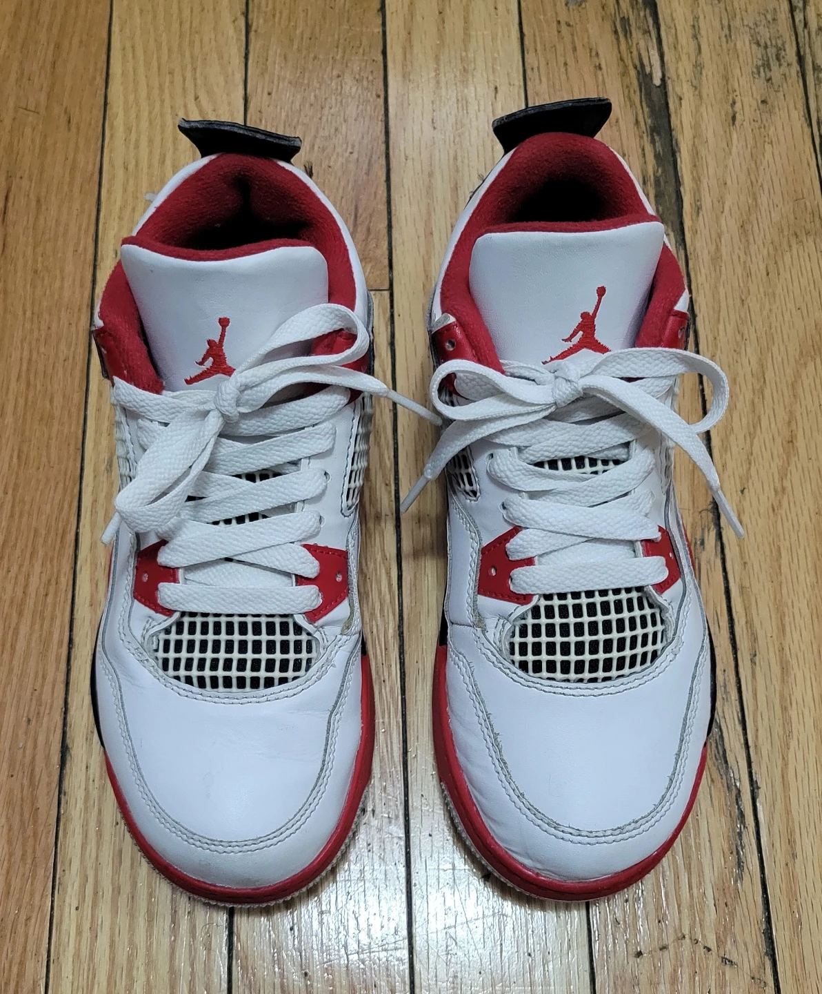Selling a pair of Jordan 4 Retro in white and red for kids! They are size 2Y.