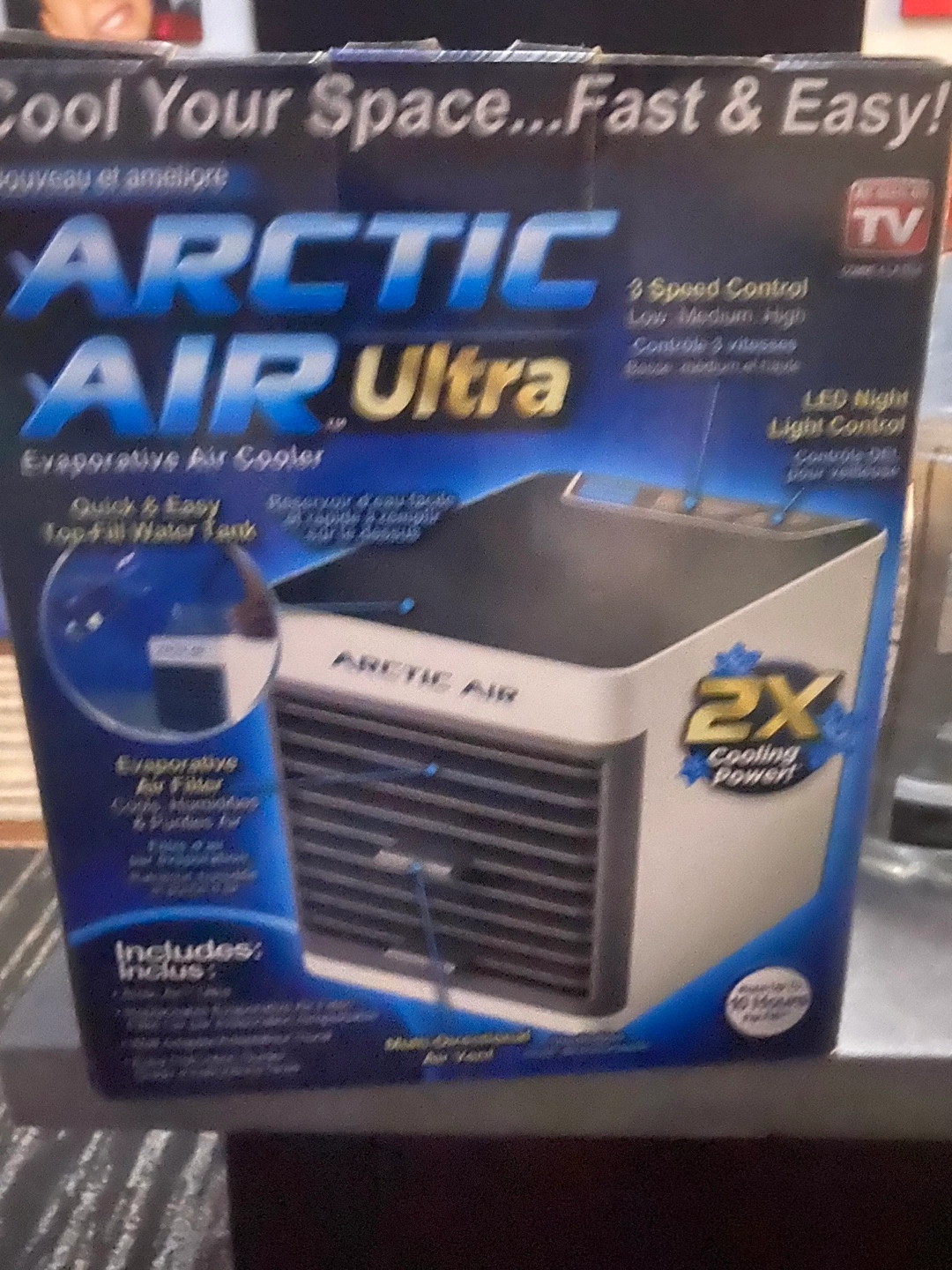 New & Improved Hydro-Chill technology. Evaporative air cooler with water and cool, clean air anywhere! Personal space cooler. Adjustable three speeds. Quiet operation. Lightweight and portable.