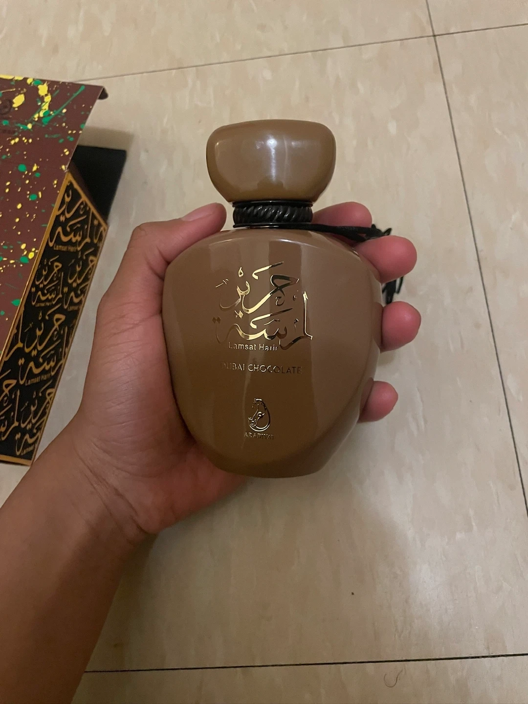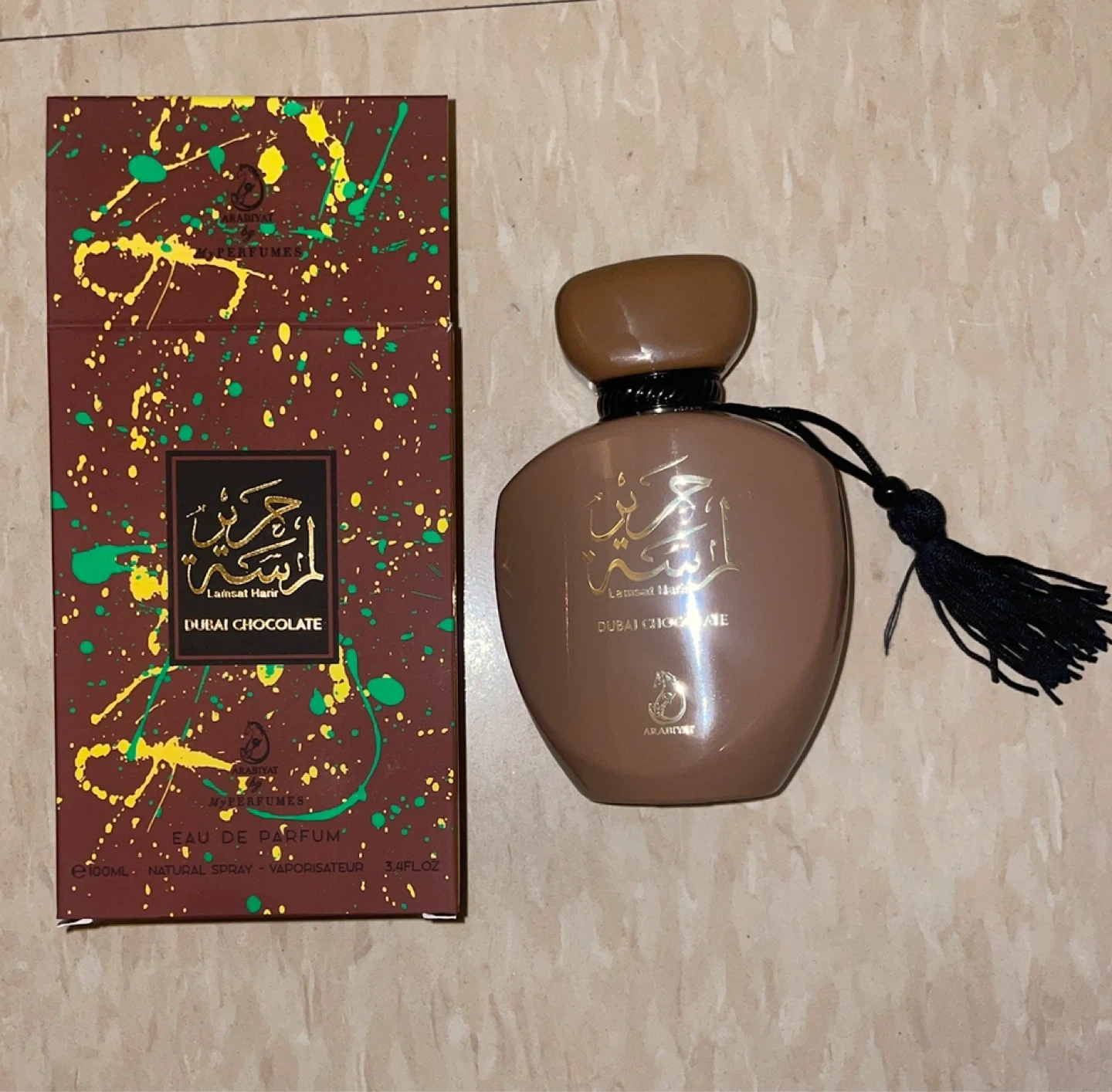 Arabiyat Lamsat Hari Dubai Chocolate Eau de Parfum. This scent comes in a 100ml bottle. Natural spray, vaporisateur. It's a unisex fragrance.