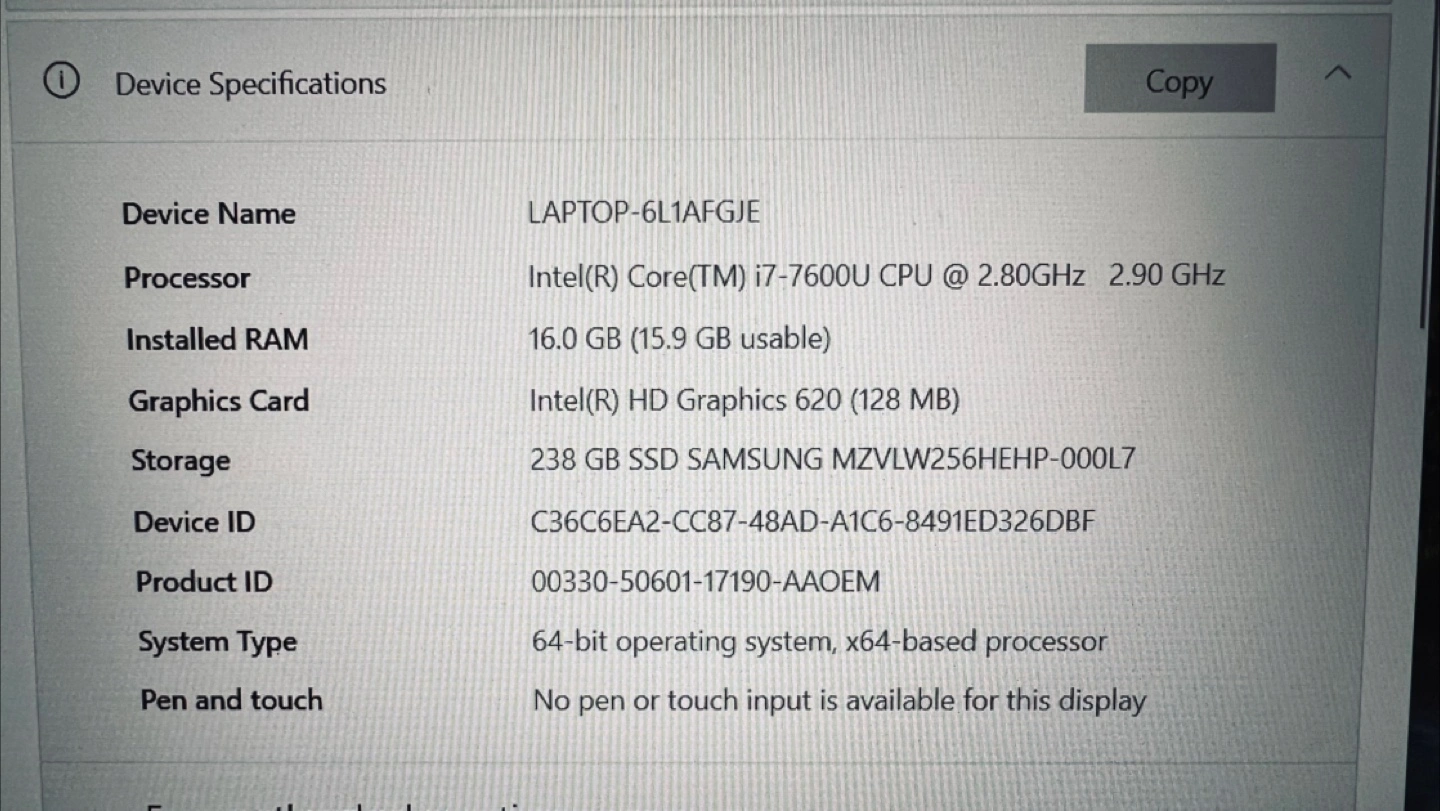 Used Lenovo ThinkPad laptop. Features a backlit keyboard and a large trackpad. Shows some wear. Slow performance despite factory reset and having a Core i7 processor. Had virus prior to factory reset. Charger is included. Specs are in the listing photos.