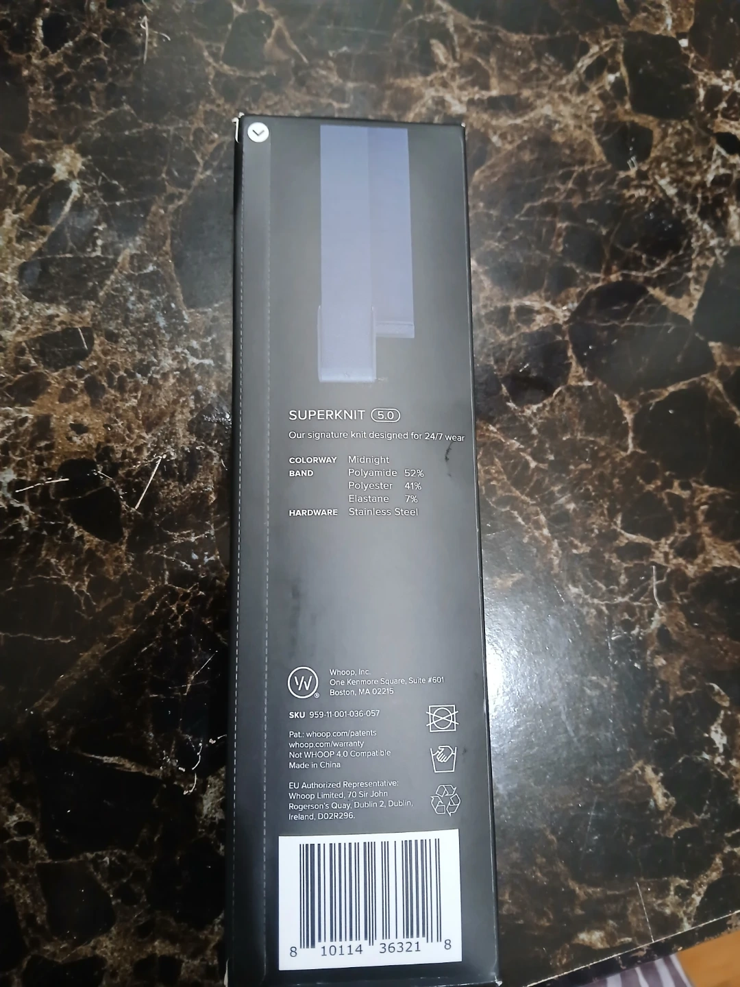 Includes one Midnight SuperKnit Whoop 5.0 band and one Obsidian SuperKnit Whoop band. Made from Polyamide (52%), Polyester (41%), and Elastane (7%). Hardware is Stainless Steel. Designed for 24/7 wear.