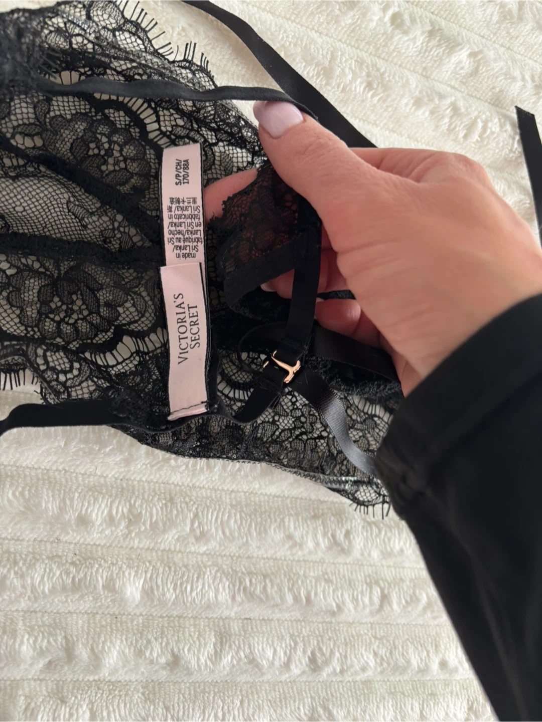 Selling a beautiful black lace teddy from Victoria's Secret. It's a size S/P. The lace detailing is really stunning!