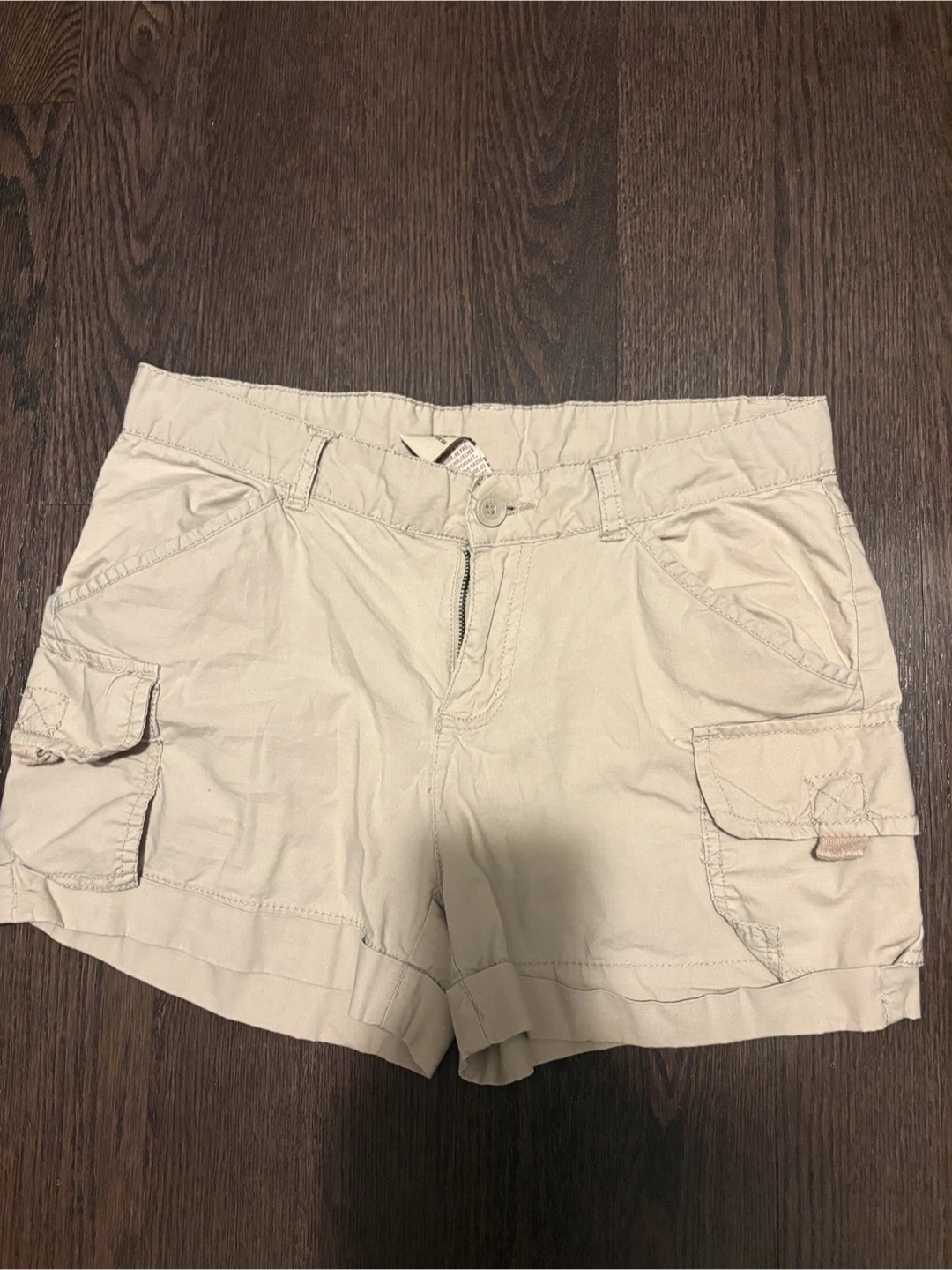 Chaps cargo shorts in a tan colour. It's a size 5/6. Features multiple pockets for storage. Cotton blend material.