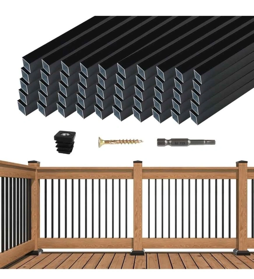 Brand new 50 pack of 36 inch black aluminum deck railing balusters. These are square spindles with a 3/4" diameter, hollow, and suitable for wood and composite decks. Model WT13.