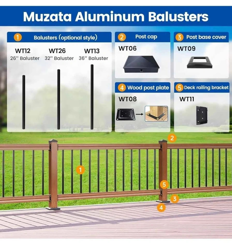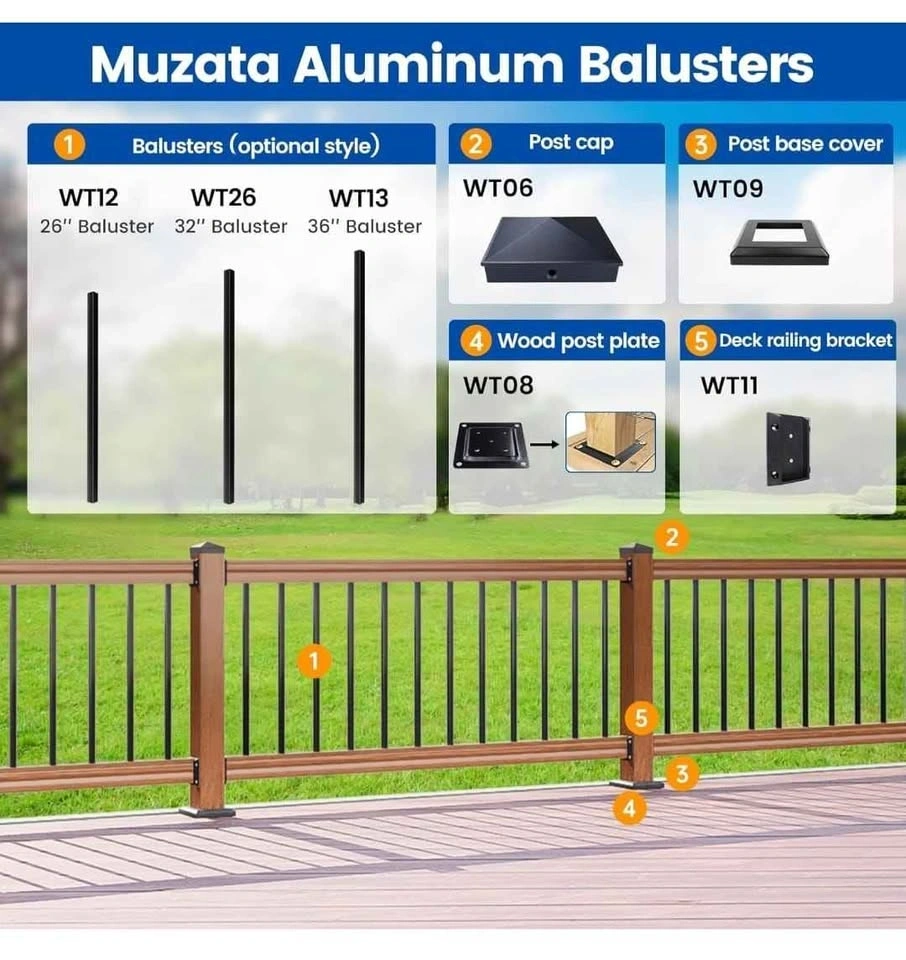 50 Pack 36" Black Aluminum Deck Railing Balusters