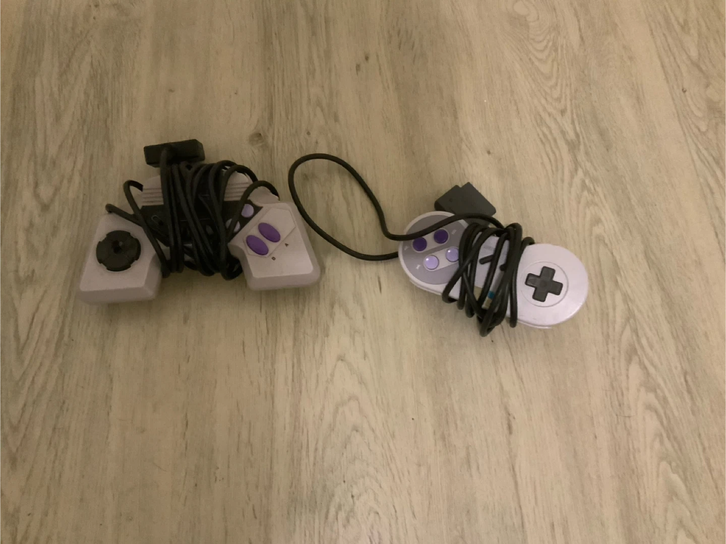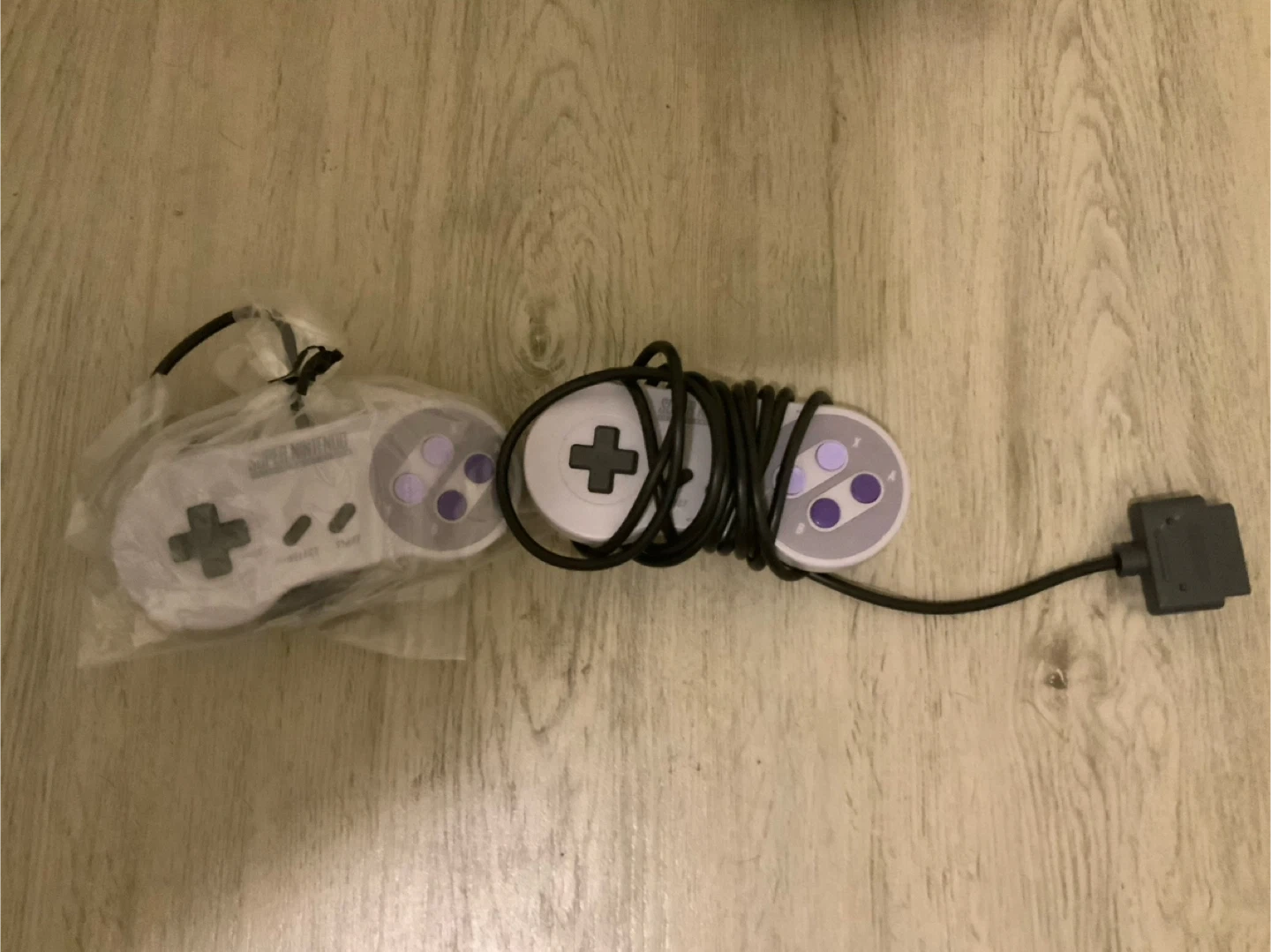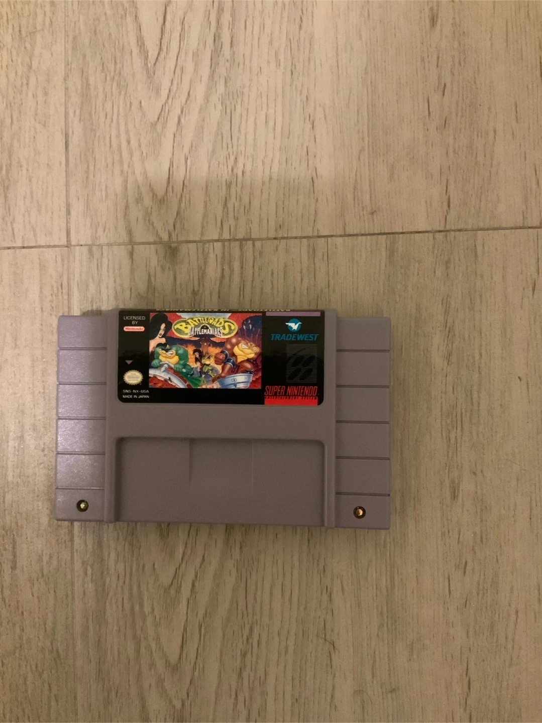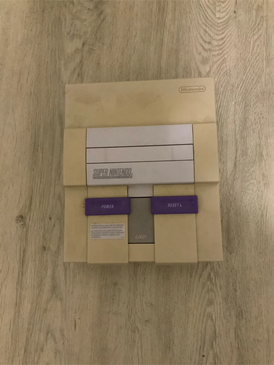 Get this Super Nintendo console, games, and controller for your retro gaming fun! It includes "Super Mario World", "NHL 95", "NHL Stanley Cup", "Battletoads in Battlemaniacs", "Bonkers", "Mighty Morphin Power Rangers", and a "Super Control Pad". Perfect for reliving classic gaming moments!