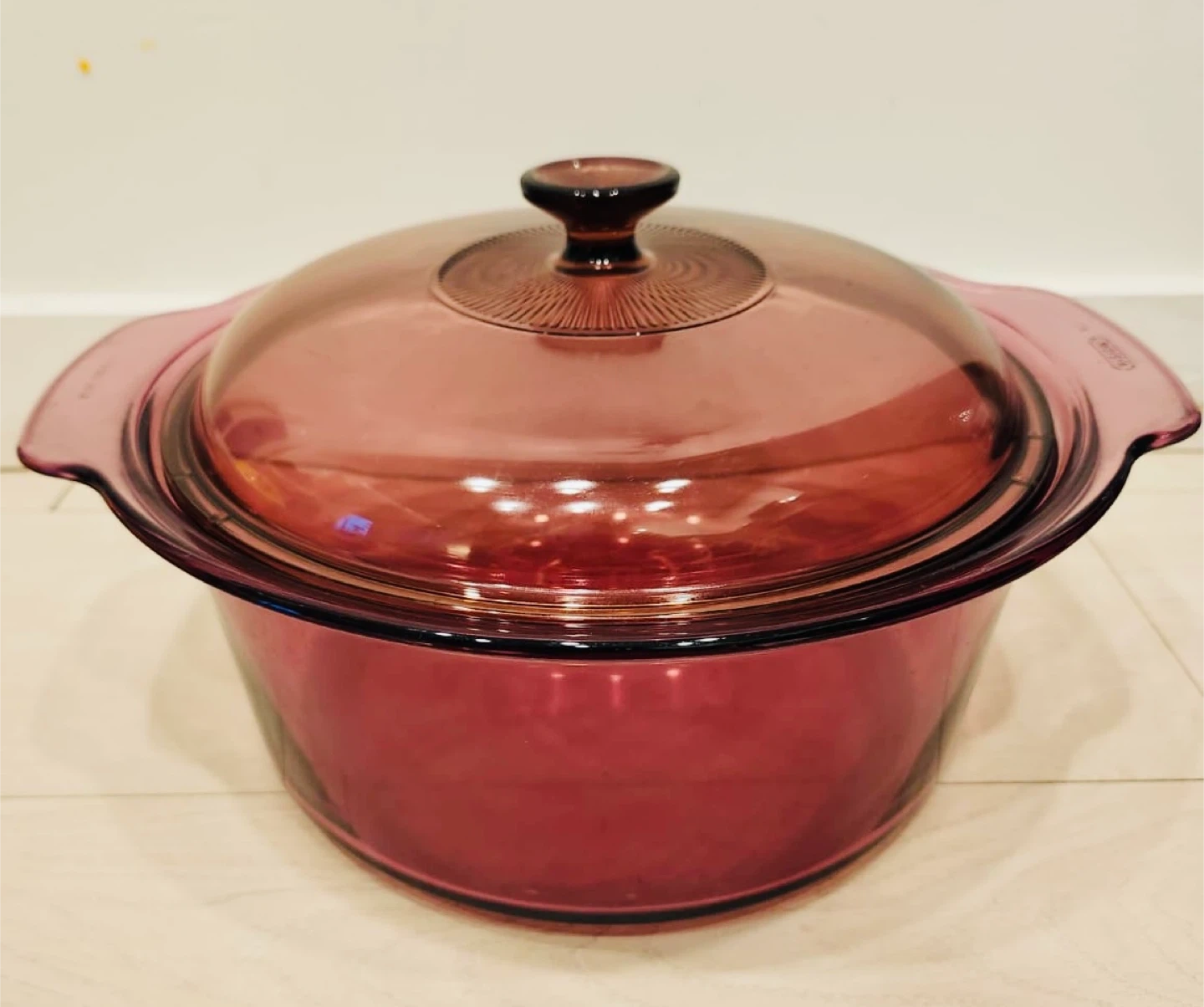 Selling a Corning Ware Vision amber glass cookware pot with a lid. It's in great condition and ready for your kitchen! This pot is perfect for cooking on the stovetop or in the oven. It's also easy to clean and dishwasher safe