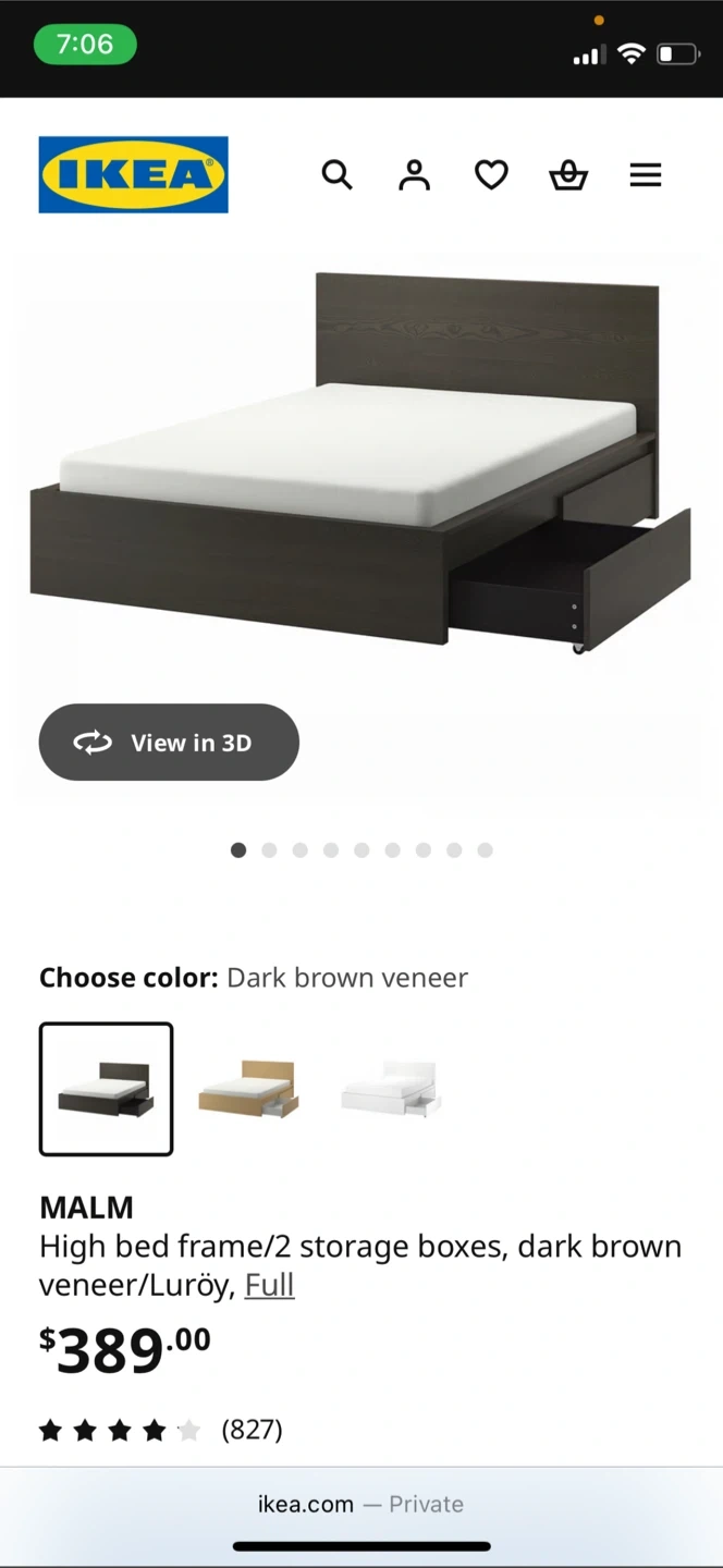 Selling an IKEA MALM full-size bed frame in dark brown veneer with two storage boxes. It's in good condition and ready for a new home. The original price was $389. This bed frame is perfect for adding storage to your bedroom!
