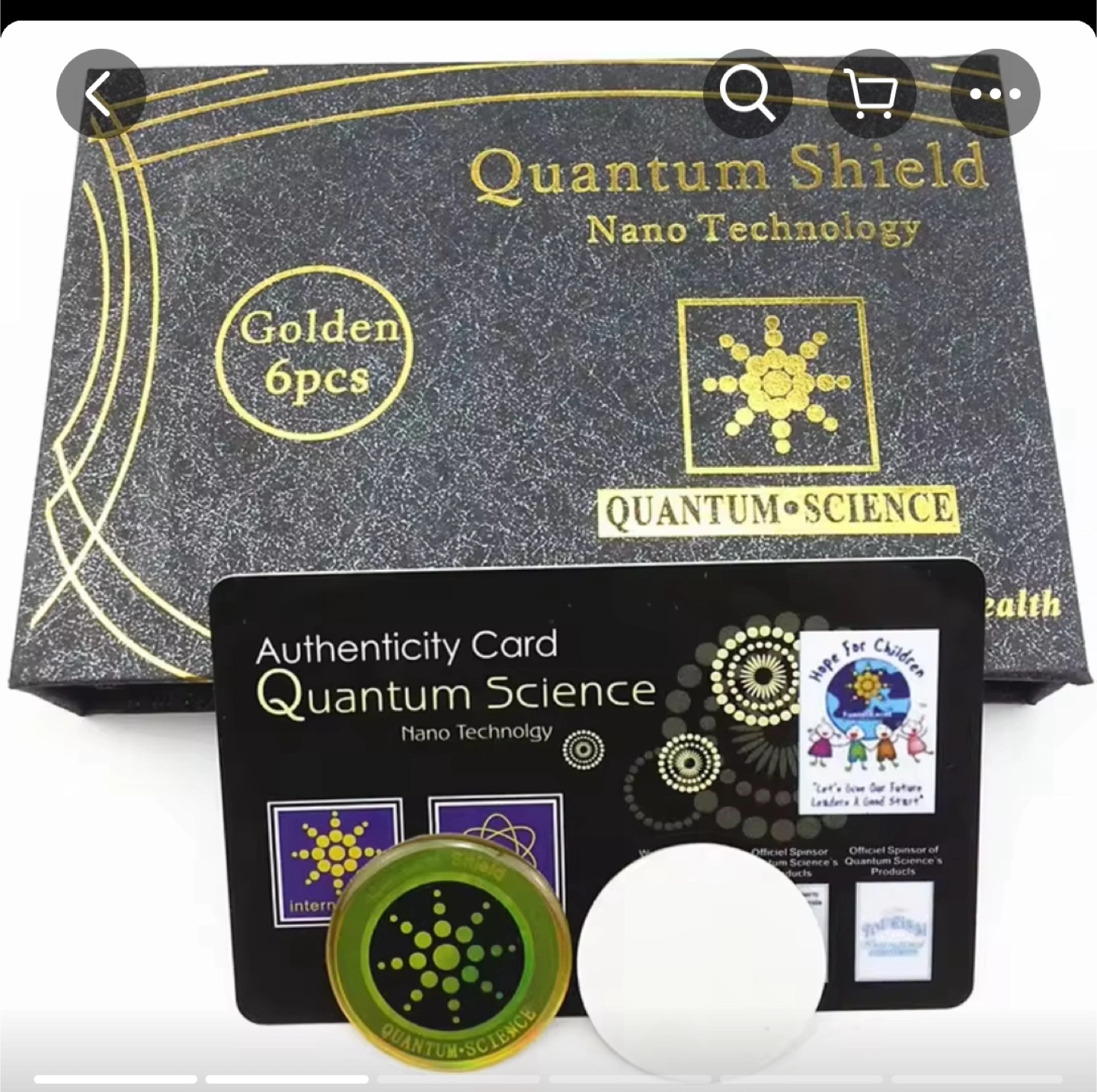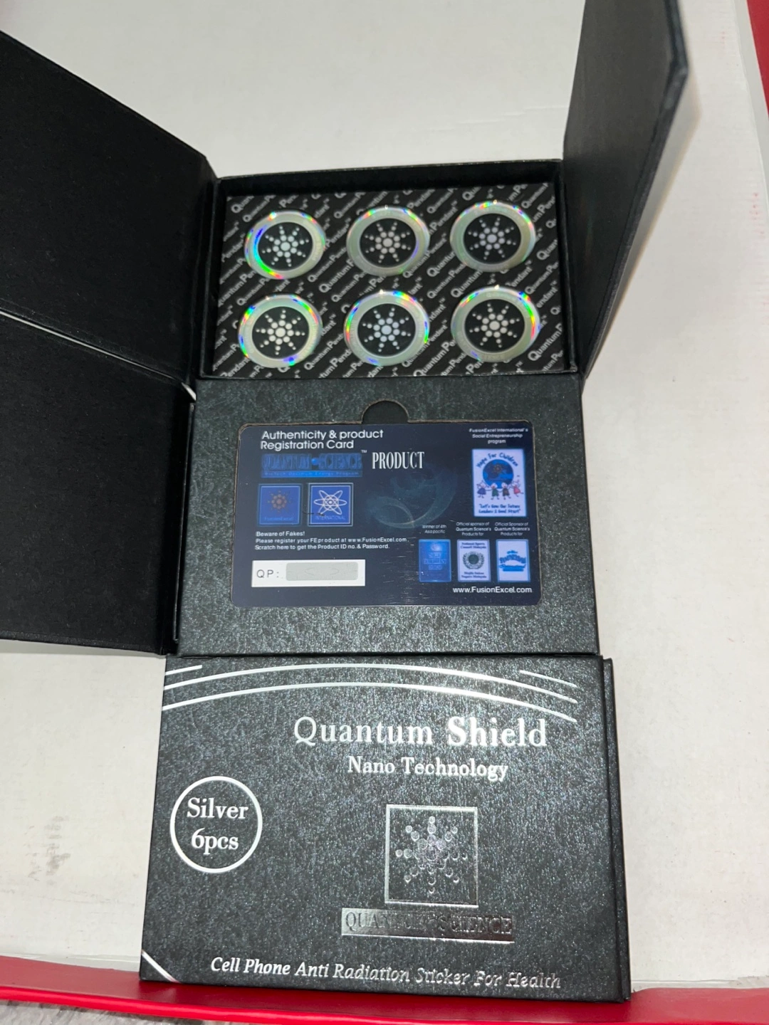 Selling a set of Quantum Shield Nano Technology anti-radiation stickers. These are designed to be placed on your cell phone to help with radiation. The box includes 6 stickers.