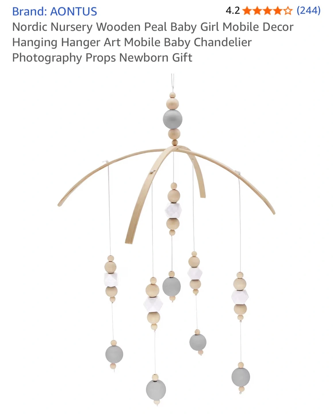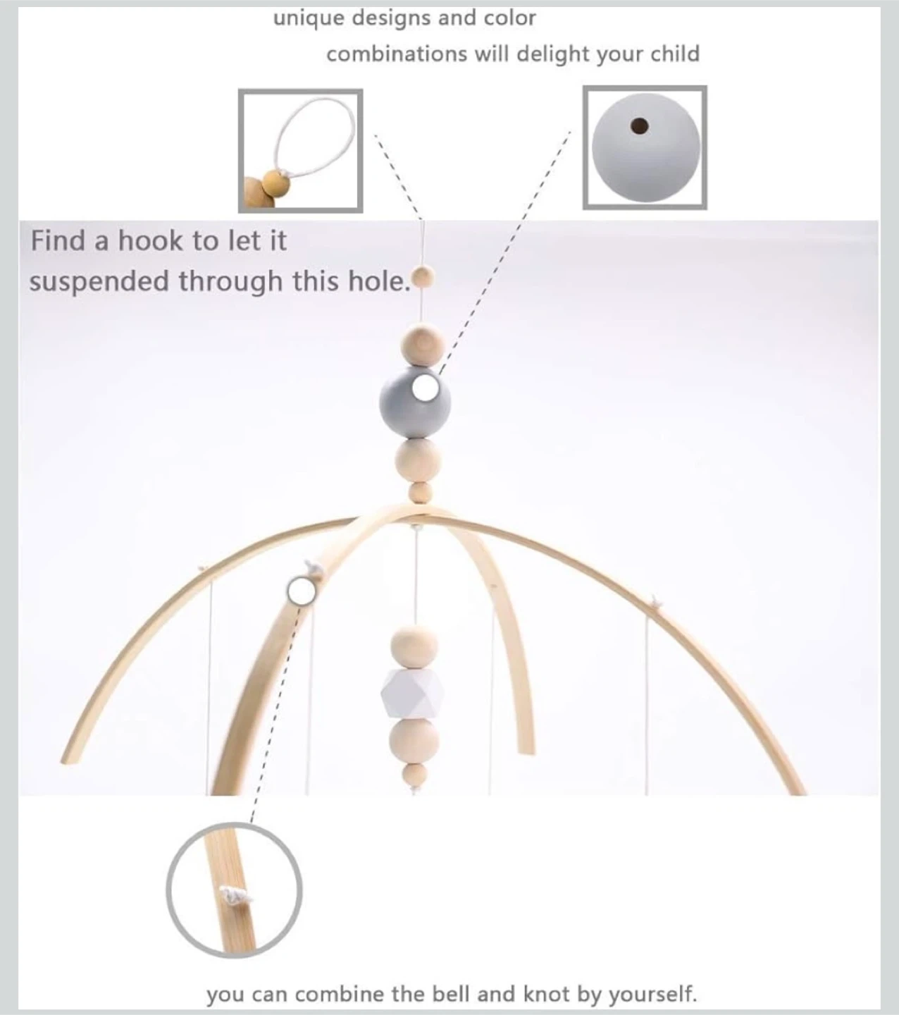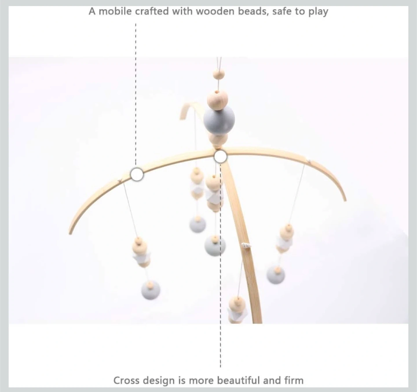 This Nordic-style baby mobile is crafted with wooden beads, making it safe for your little one to play with. The cross design is both beautiful and firm, and the unique colour combinations will delight your child. It measures 12 inches wide and 17 inches high, with bead sizes ranging from 0.78 to 1.78 inches. Perfect as a newborn gift or nursery decor!