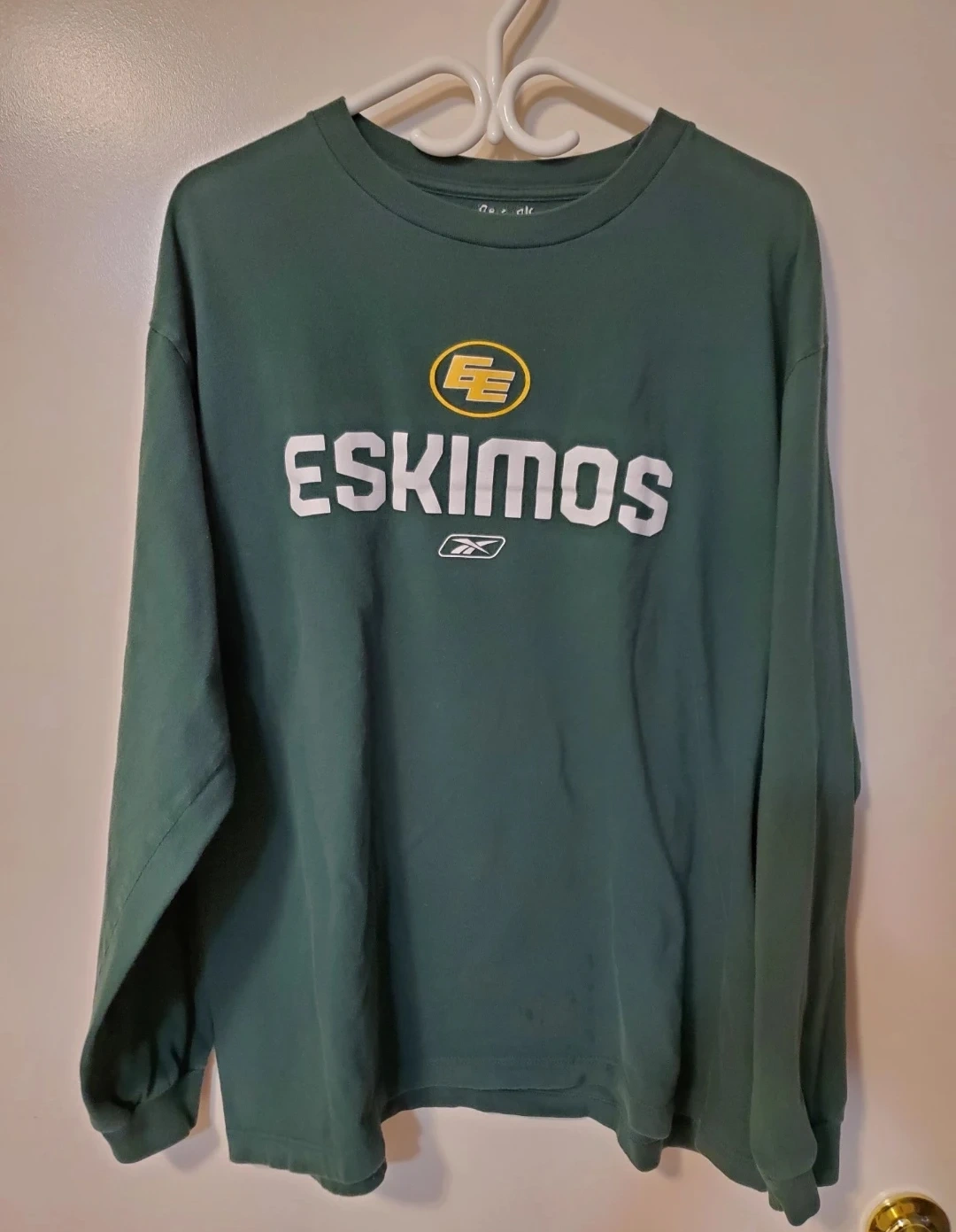 Reebok Eskimos long sleeve shirt in size XL. It has some grease spots near the bottom that didn't wash out, so only asking $5.
