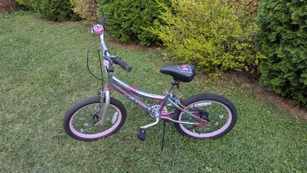 Selling a Movelo KJ 18" girls steel bike. It's in good condition and ready for a new rider! Perfect for learning to ride or enjoying a leisurely bike ride around the neighbourhood