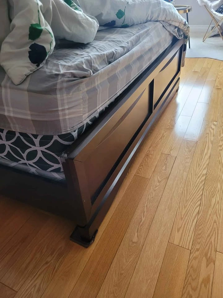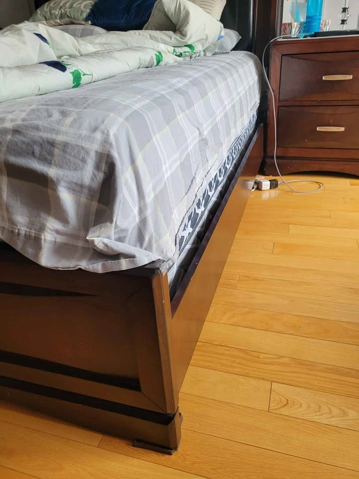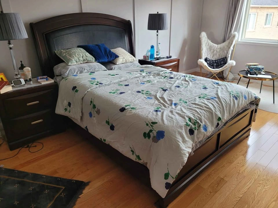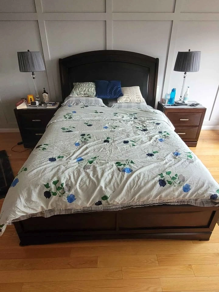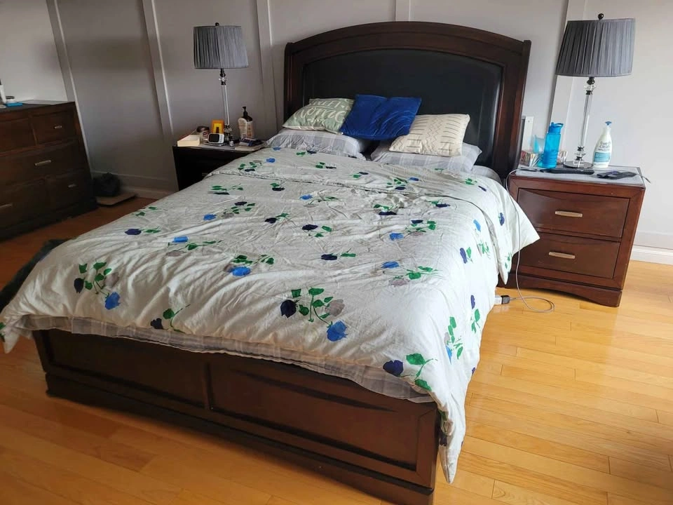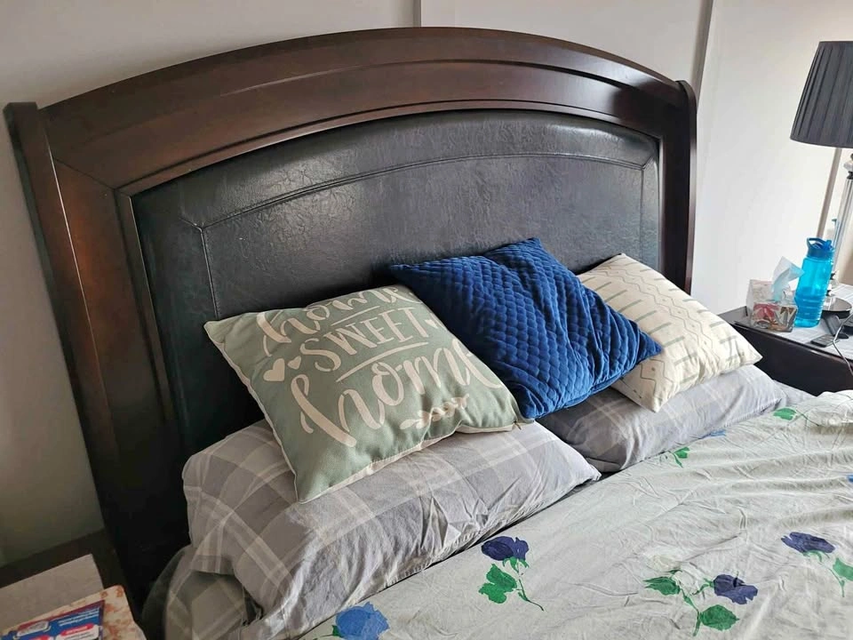 Dining Table with 6 Chairs - Dark Wood & Black Leather