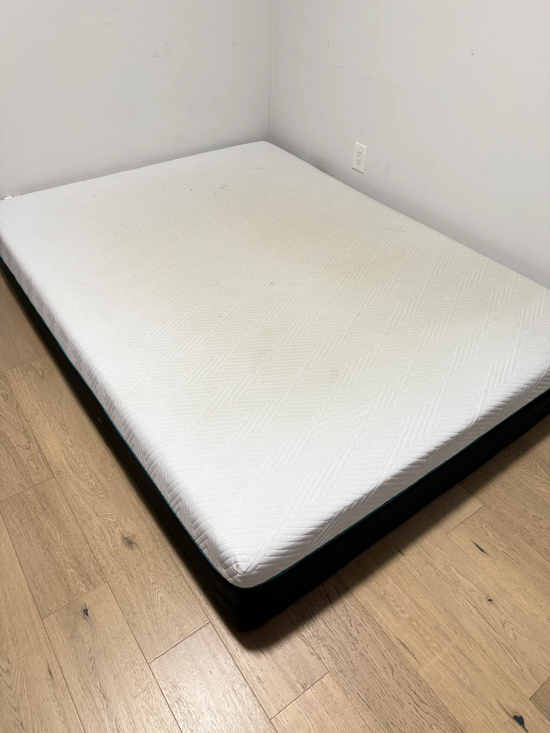 10Selling a queen sized mattress in excellent condition for $200 because I am moving to another place. I purchased this from amazon for $450 and used only for 2 months. Mattress is in excellent conditions and provides good support to your back. It is medium-firm mattress. Only pickup is available. It's white with a black base and a teal accent stripe. Perfect for a good night's sleep!