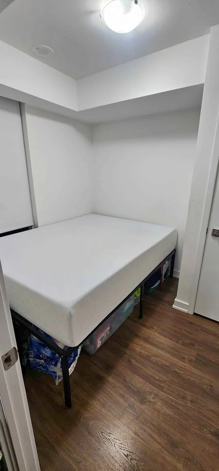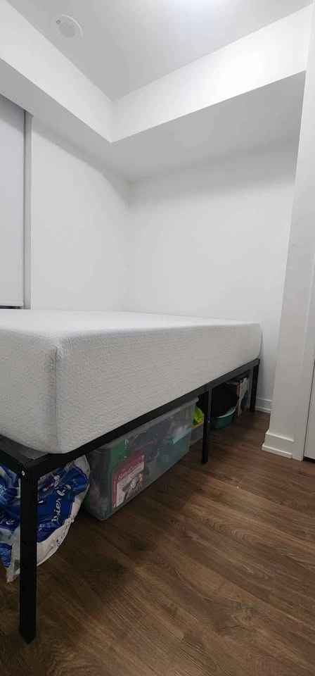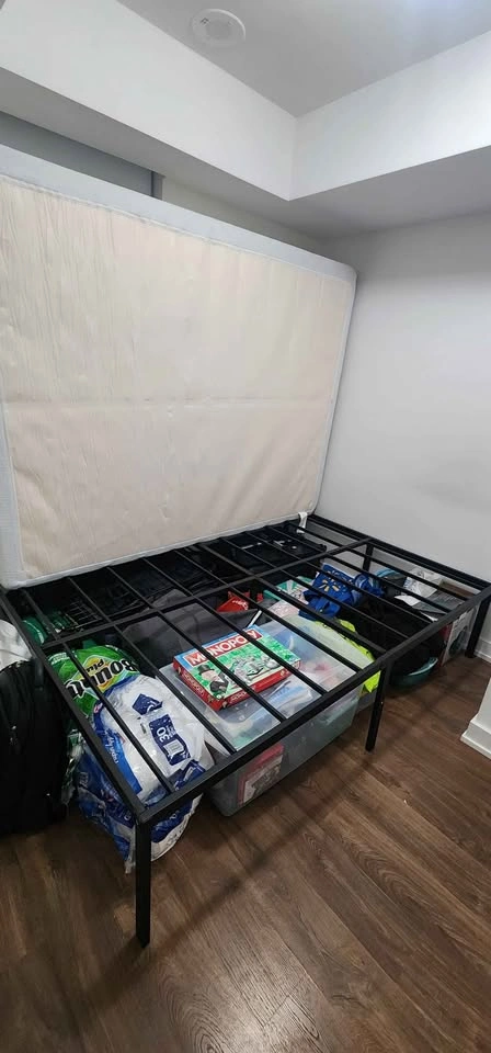 Wayfair Sleep™ 12" Medium Cooling Gel Memory Foam Mattress and 18 Inch Queen bed frame for sale. Ample space underneath the frame for storage. Bought in March, 2025 and barely used. Also giving away Queen bed skirt along with this for free. Selling this as part of move out sale.