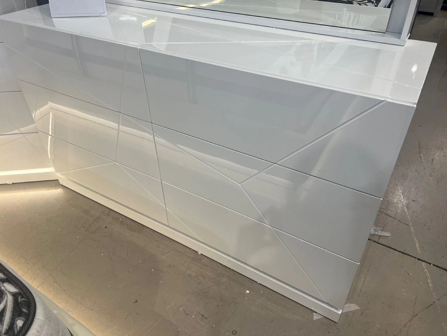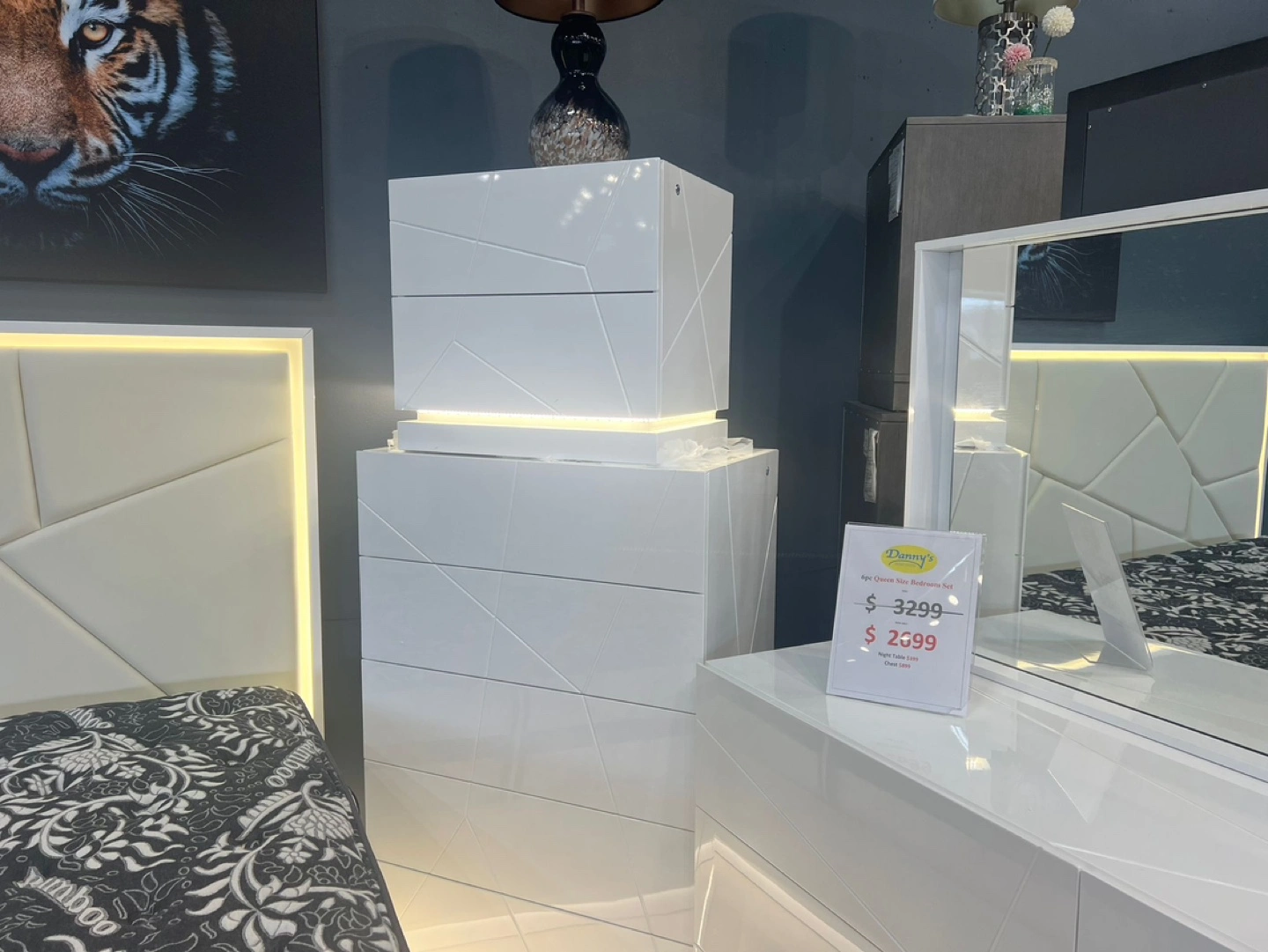 Bedroom set White Nightstand with Rhinestone Trim