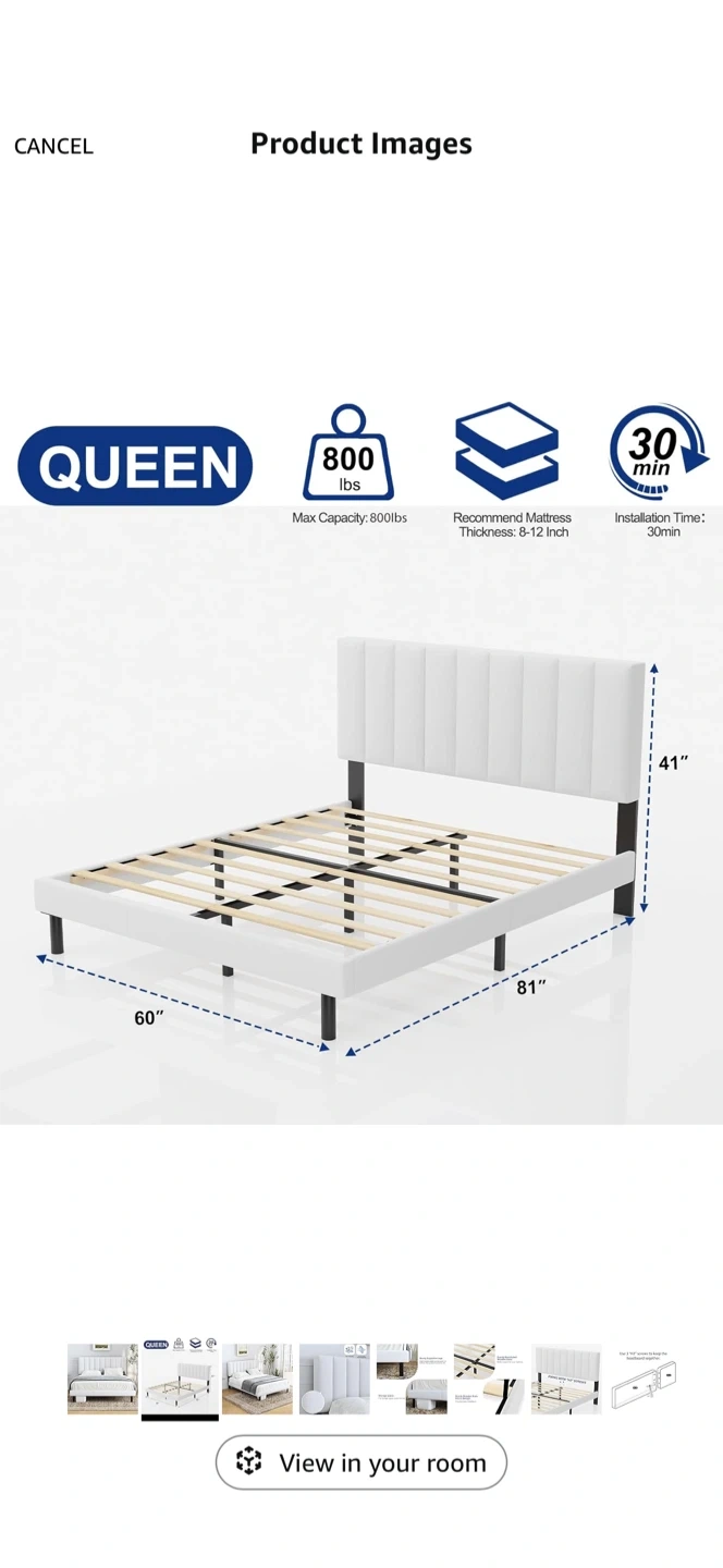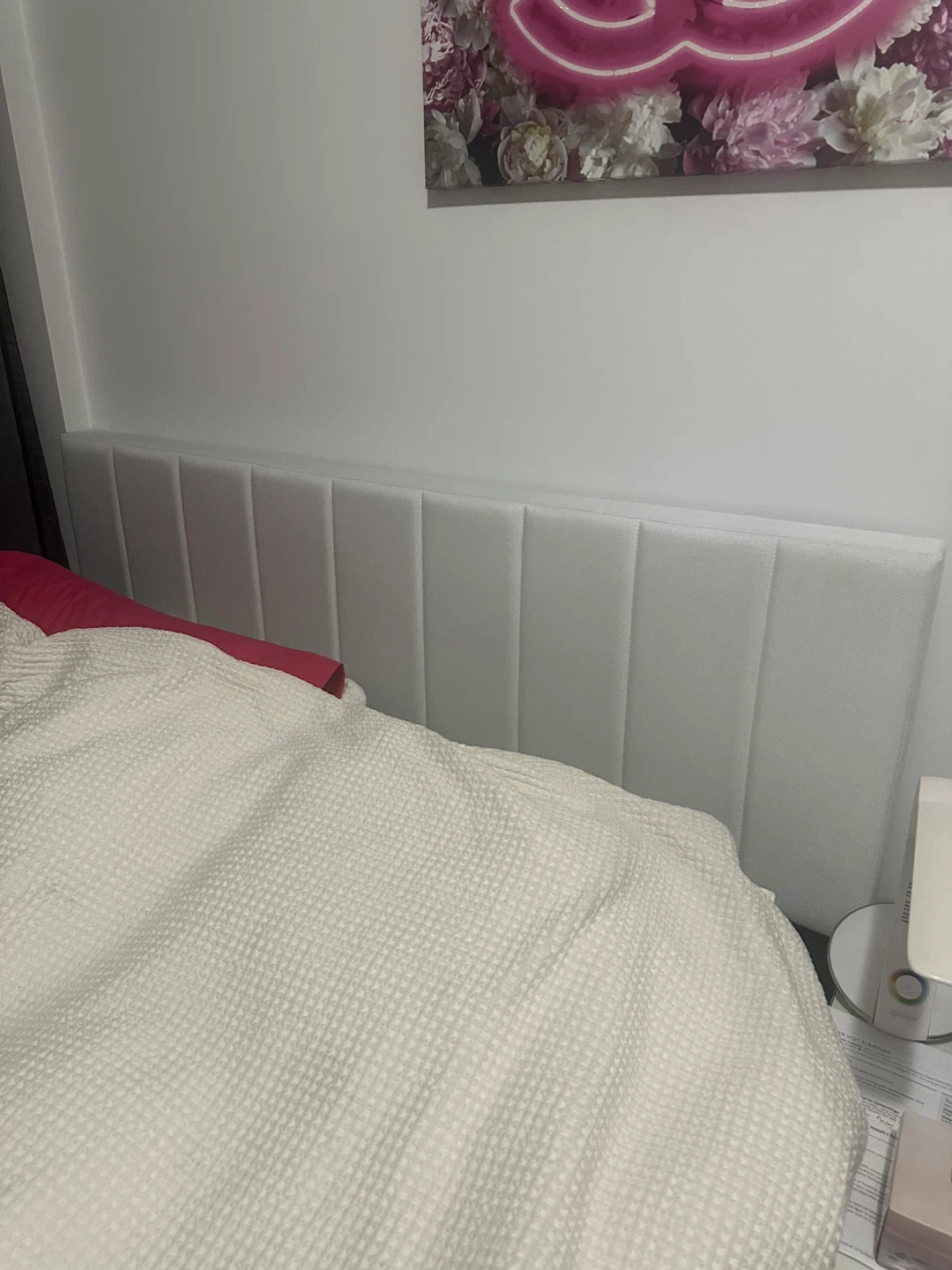 Queen size bed frame in an off white cream colour. Bought on Amazon a year ago. Very easy to put together. Once taken apart, everything fits in the headboard so very easy to transport. No stains, it’s basically like brand new. Asking $150 OBO Pick up at Islington & Queensway Cash only