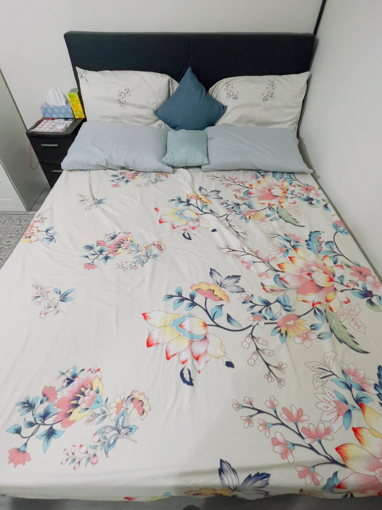 5Blue wood & metal bed frame with a headboard. The bed frame does not include a mattress. However, if you wish to buy the mattress, it will be $250. Both bed and mattress are in perfectly good condition.