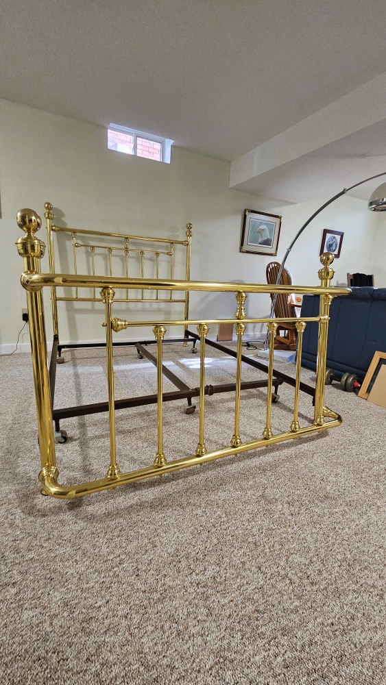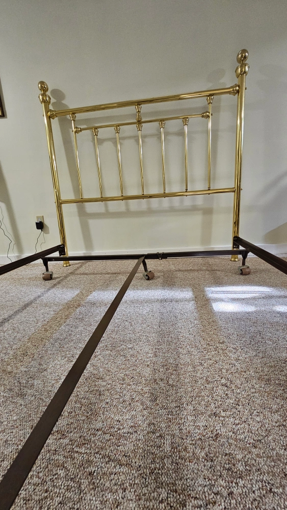 Selling a queen size brass headboard and footboard. A sturdy steel bedframe is included. Add a touch of elegance to any bedroom. It's in great condition and ready for a new home!
