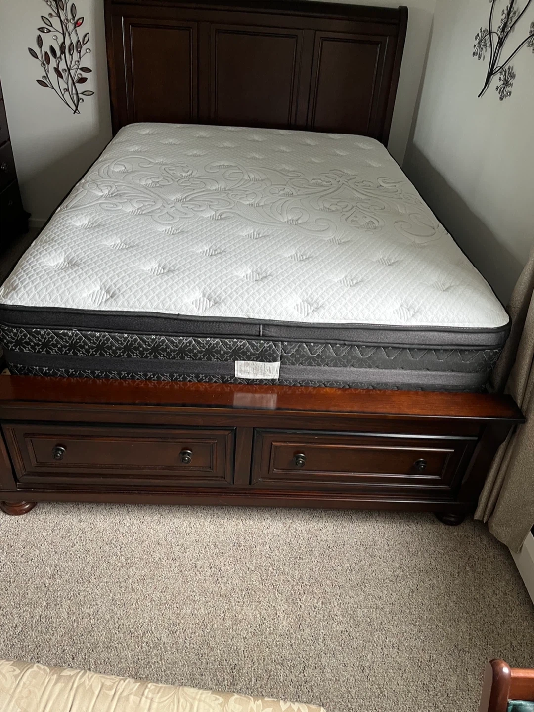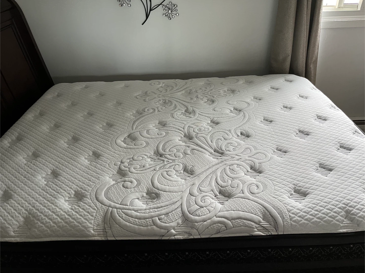 Selling a queen size mattress. It's in excellent condition and ready for a new home. The mattress features a detailed floral pattern on the top. Perfect for a guest room or upgrading your current sleep setup! One year old, smoke free, pet free & kid’s free.. must go this weekend!! Pick up in Gloucester