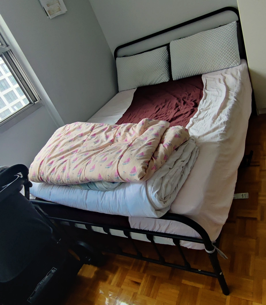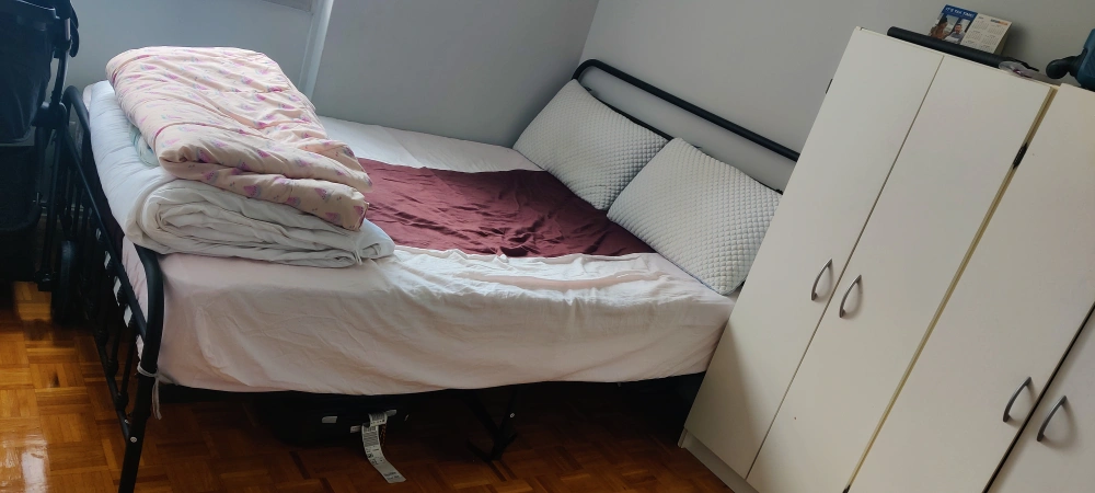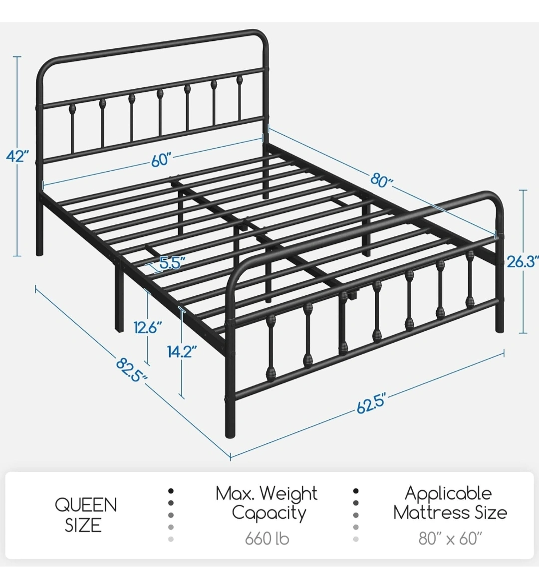 17Metal Bed Frame Queen Size, Purchased 9 month ago but need bigger one so want to sell. Queen size hybrid mattress with bugs protector cover is FREE with bed frame, Mattress 1.5 year old. Link for bed frame: https://a.co/d/hFUhZNZ Door Pickup only, Bed Frame is dissembled and comes with all screws and tools and Manual. Serious Inquiry Only.
