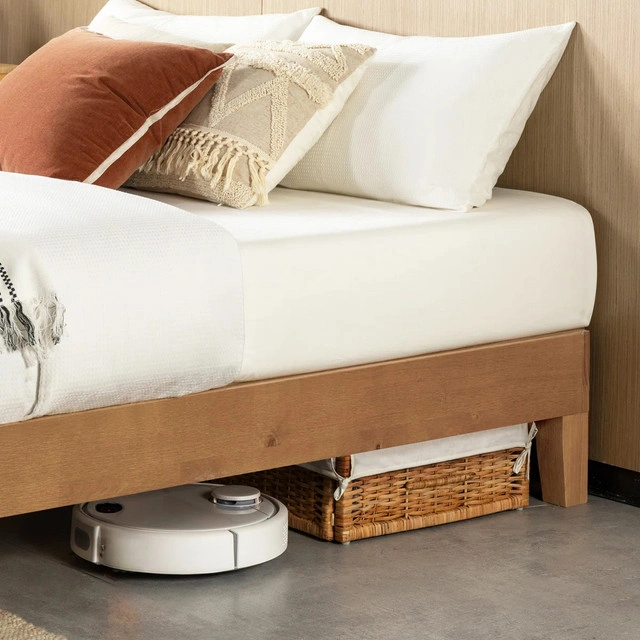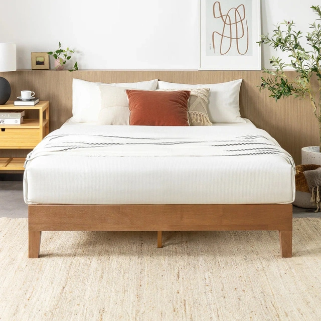 60This queen bed frame features a clean and modern design with a natural wood finish, offering sturdy support and a minimalist aesthetic for any bedroom. Being sold in used condition. Here are the details: * Size: Queen * Material: Wood * Style: Modern * Colour: Natural Wood Condition: Used - Good