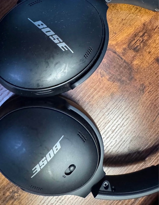 Used Bose QC 45 headphones with exceptional audio quality and noise cancellation. Comfortable over-ear design, perfect for travel, work, or home. Features Acoustic Noise Cancelling, Aware Mode, up to 24 hours of battery life, and Bluetooth. Used for less than 20 hours. There is a small stain, possibly from cleaning product. If the ad is up, they're still available.
