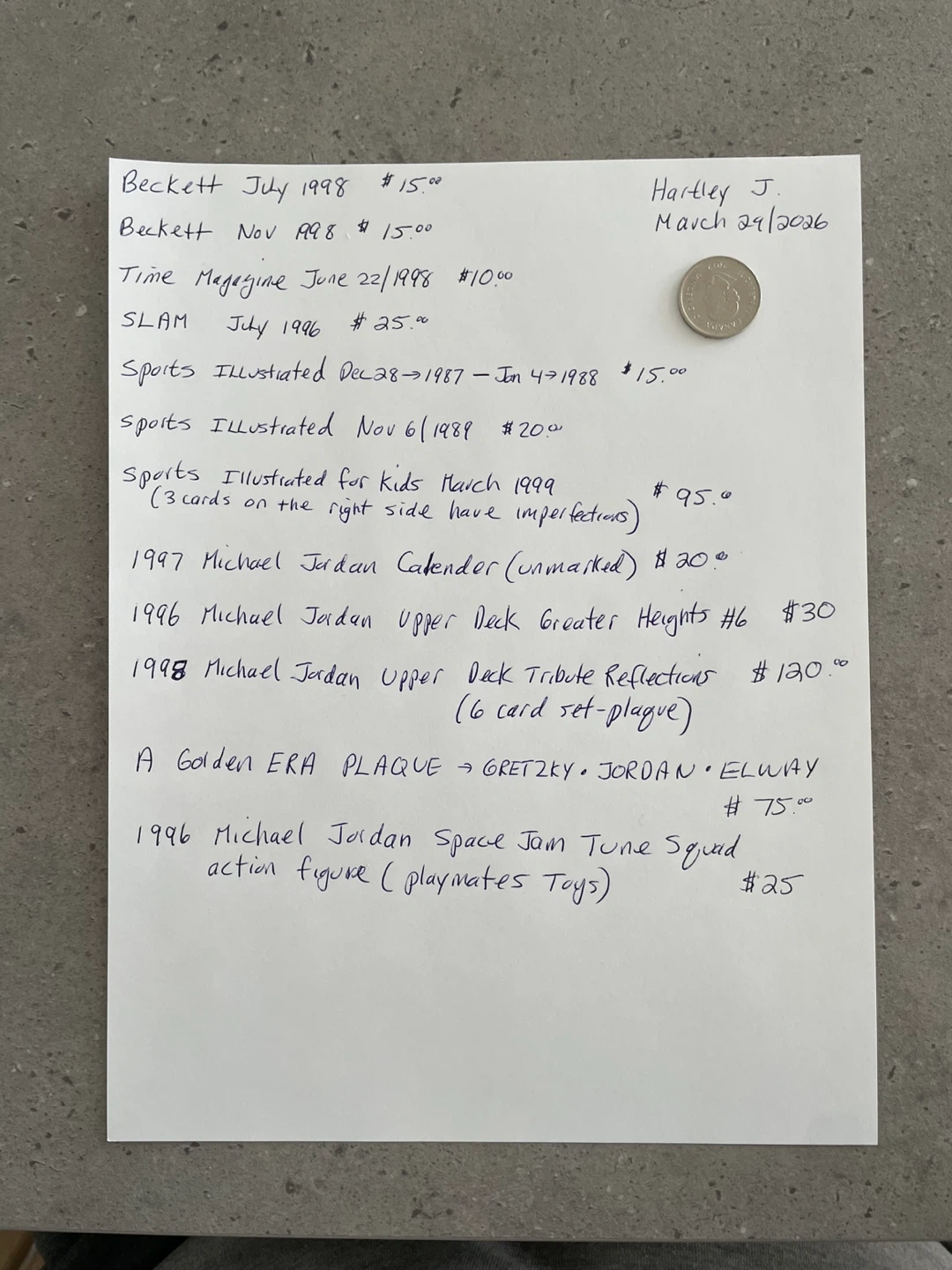 Buy & SellMichael Jordan CollectablesMichael Jordan Collectables$1,234All prices listed on last two pages!WHERE TO MEETCharleswoodView MapSELLERHartleyElmhurst151 review0 chats·0 favorites·3 viewsSEND CHAT TO SELLERHi Hartley! I’m interested in your listing.Hi Hartley! I’m interested in your listing.Get the Karrot app to chatSign In to chat