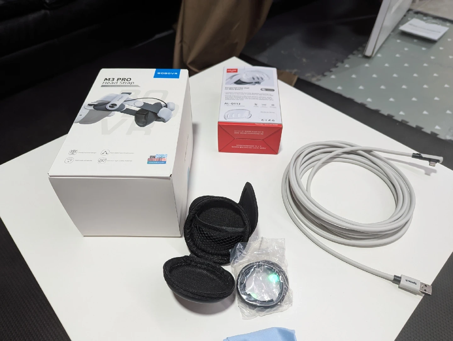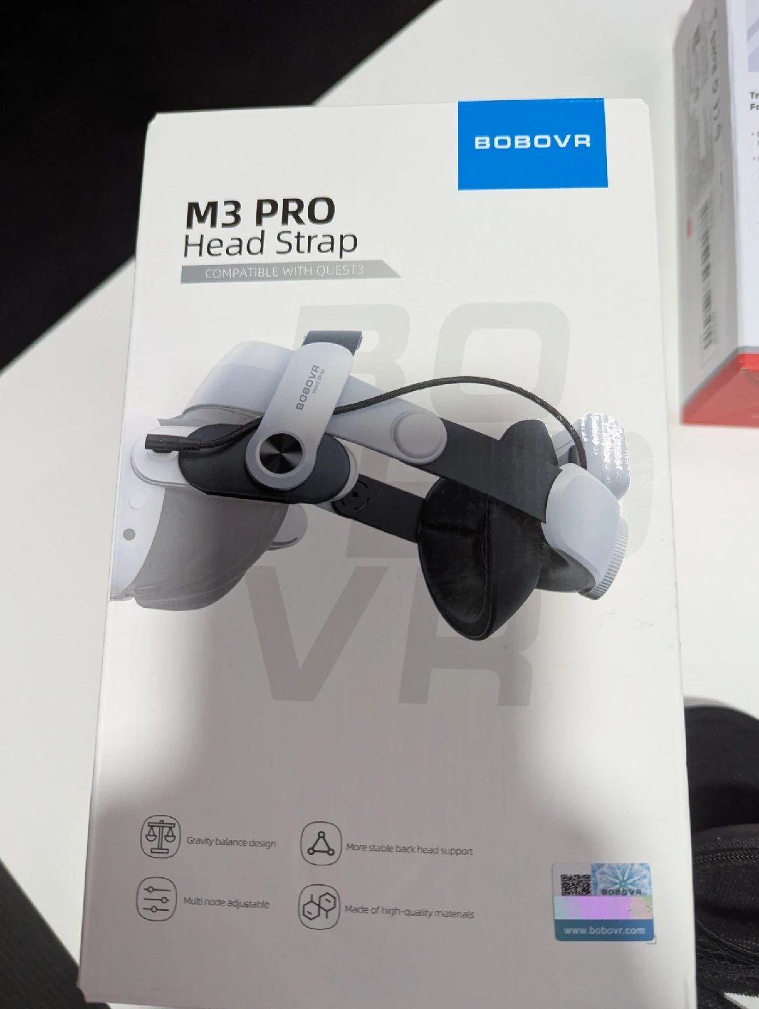 10Selling a BOBOVR M3 Pro Head Strap compatible with the Meta Quest 3 (BNIB). This head strap features a gravity balance design and a more stable back head support. It's also multi node adjustable and made of high-quality materials. Box included! brand new, and several other extras included; protector, cable