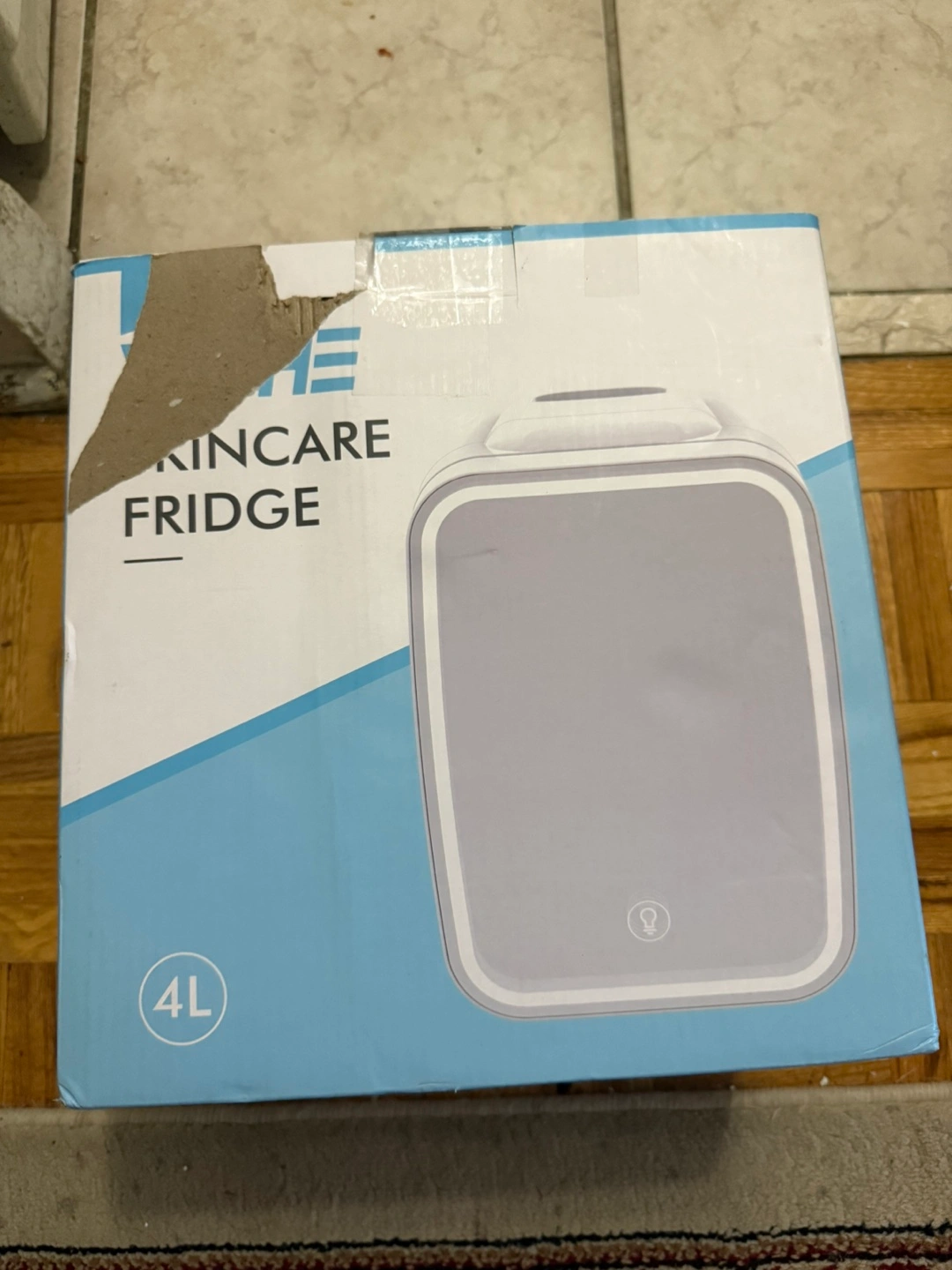 Selling a YASHE mini skincare fridge new in box. It's a 4L fridge, perfect for keeping your skincare products cool. It also has a dimmable LED mirror.