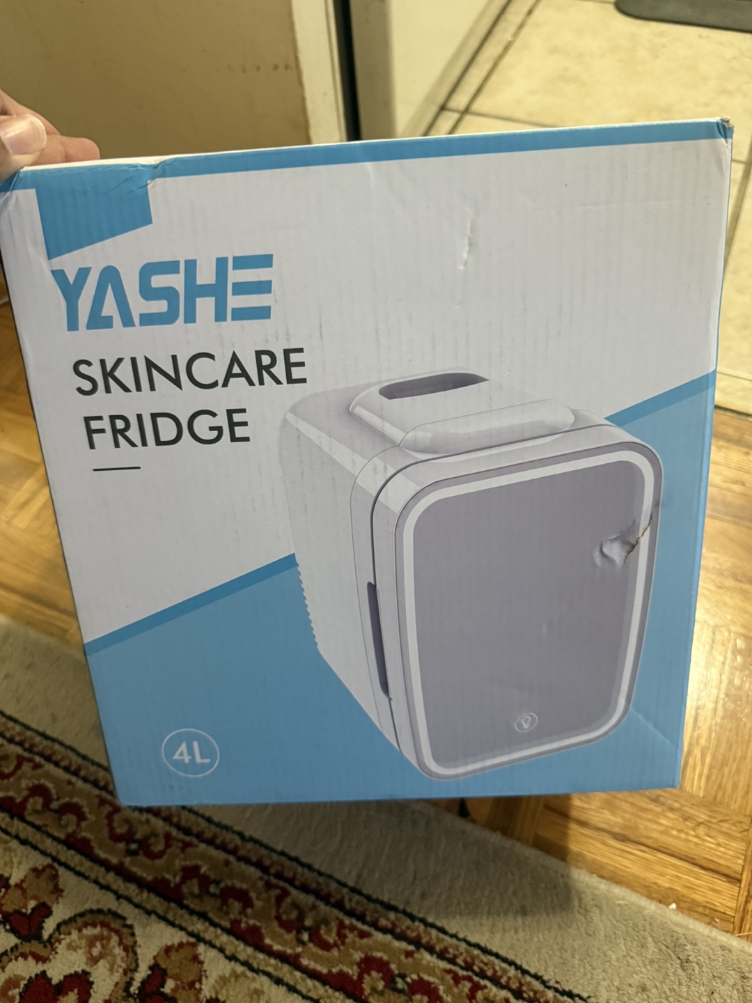 Selling a YASHE mini skincare fridge new in box. It's a 4L fridge, perfect for keeping your skincare products cool. It also has a dimmable LED mirror.
