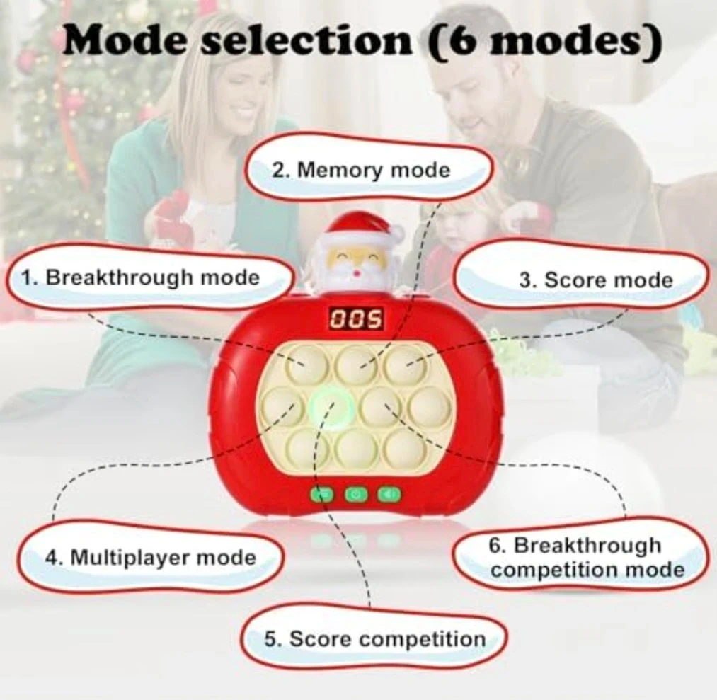 131Fun little game to keep the kids entertained! The Santa Pop Game is a cute, red, and interactive toy that's sure to bring some smiles. Quick Push Santa Claus Game Fidget Game Portable Electronic Luminous with 6 Game Modes Fidget Toys Christmas Gifts Children Birthday Gift Party Gift