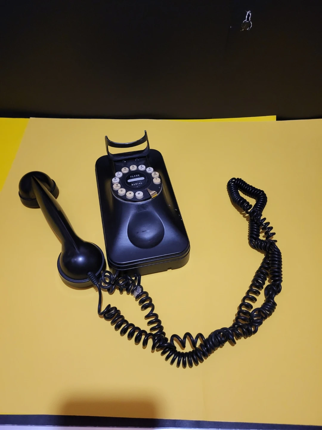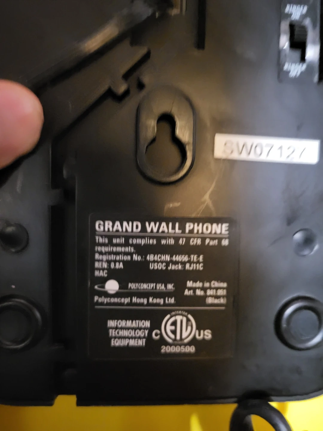 This is a black Polyconcept Grand Wall Phone with a fake rotary dial. Phone works, but i couldn't get the ringer to work.