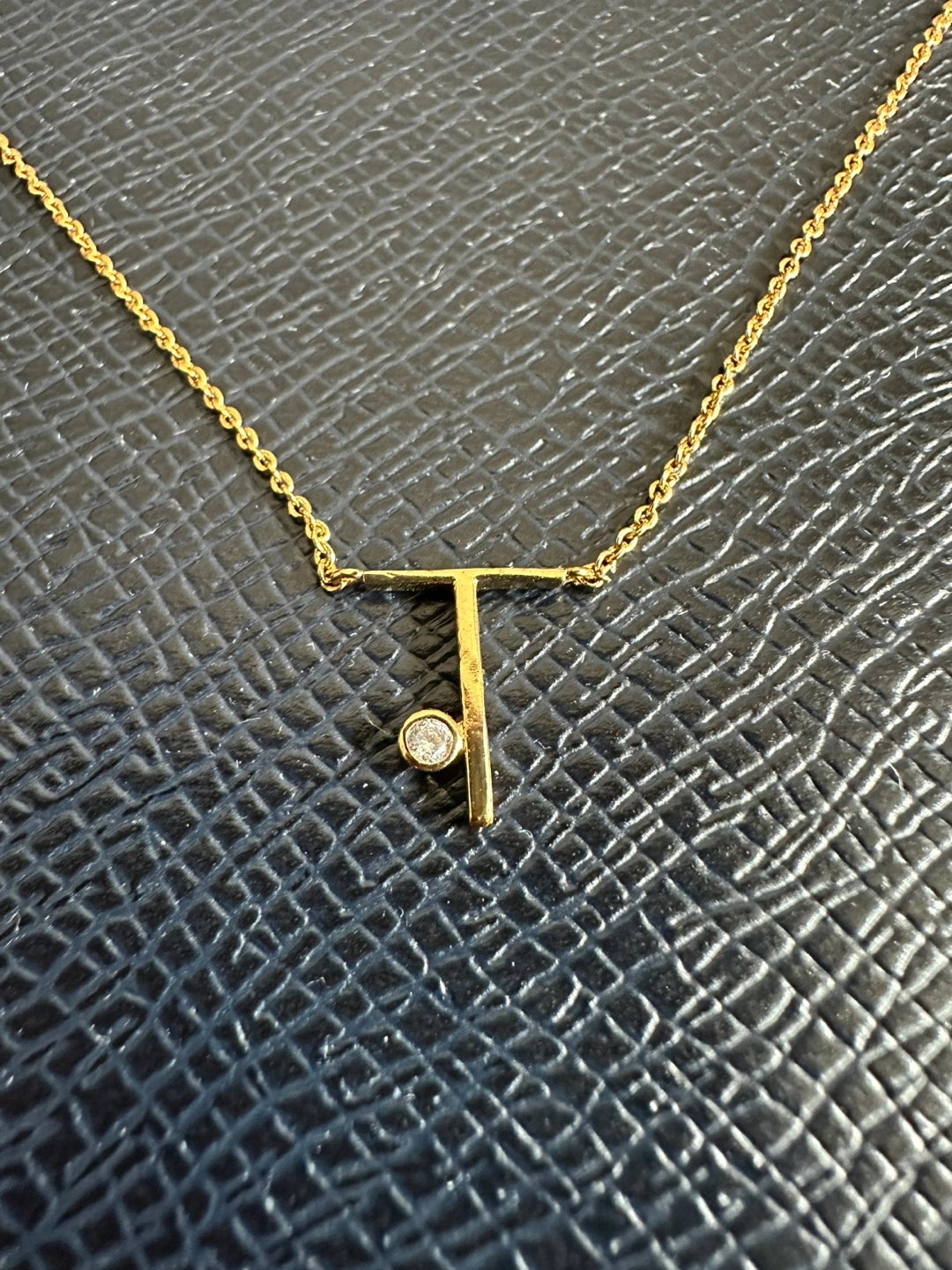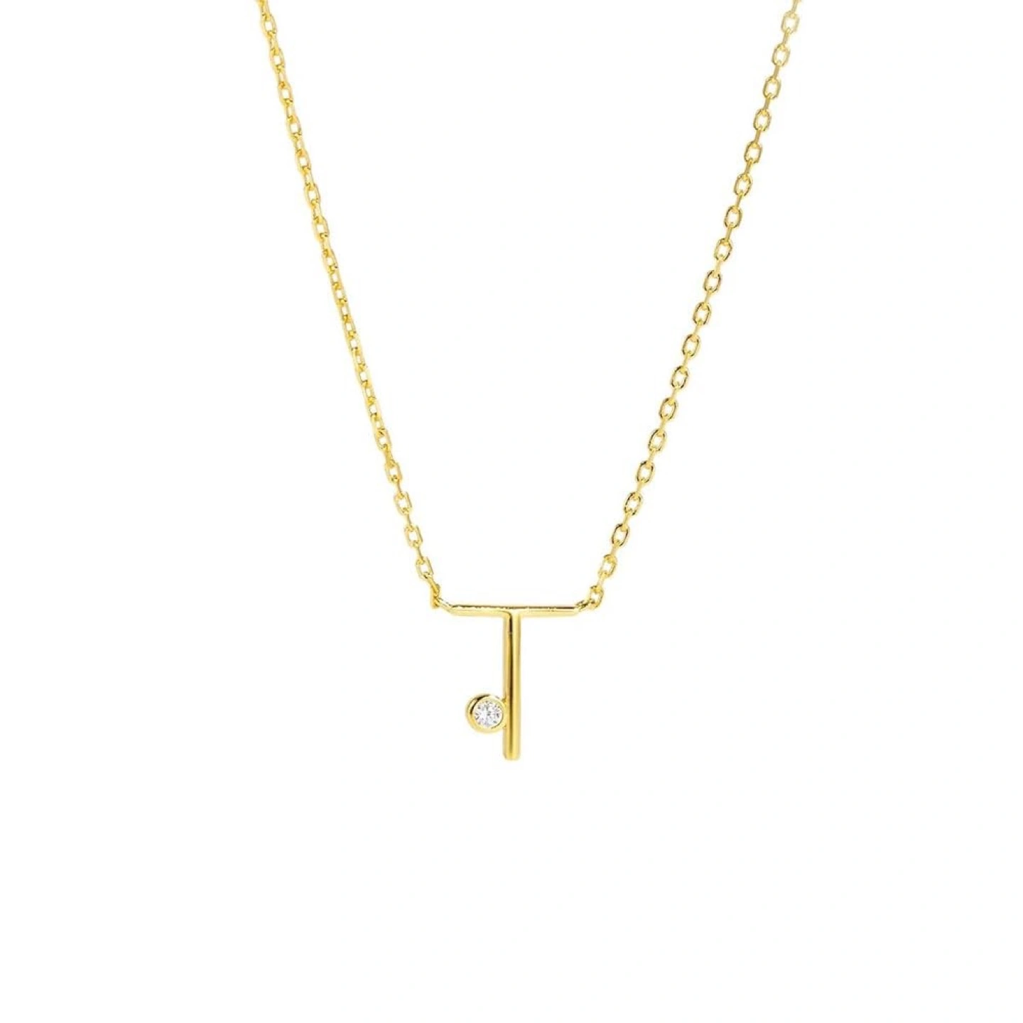 Gold Tone Dainty Initial Necklace “T”