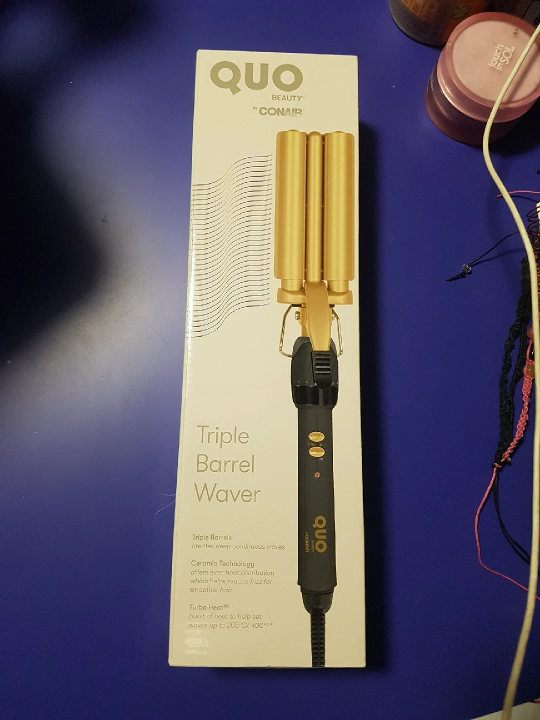 Get those deep, continuous waves with this QUO Beauty Triple Barrel Waver! It's made by Conair and features ceramic technology to help reduce frizz for smoother hair. It also has Turbo Heat to help set waves up to 205°C/400°F. Box included